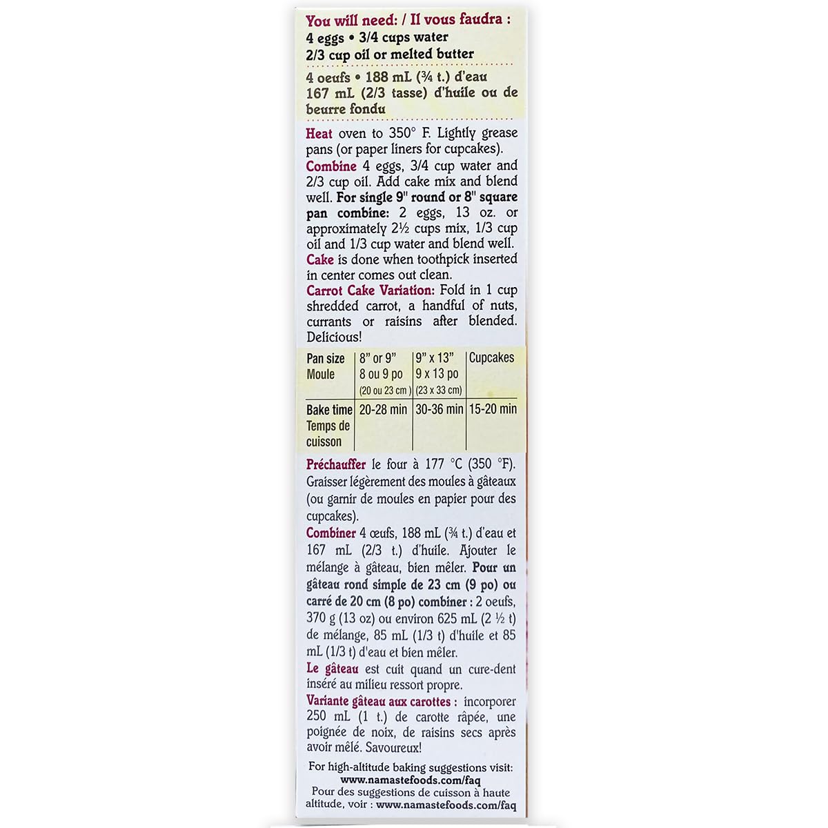 - Namaste Foods Mix Cake Spice Wheat Free Gluten Free Dairy Free, 26 oz.