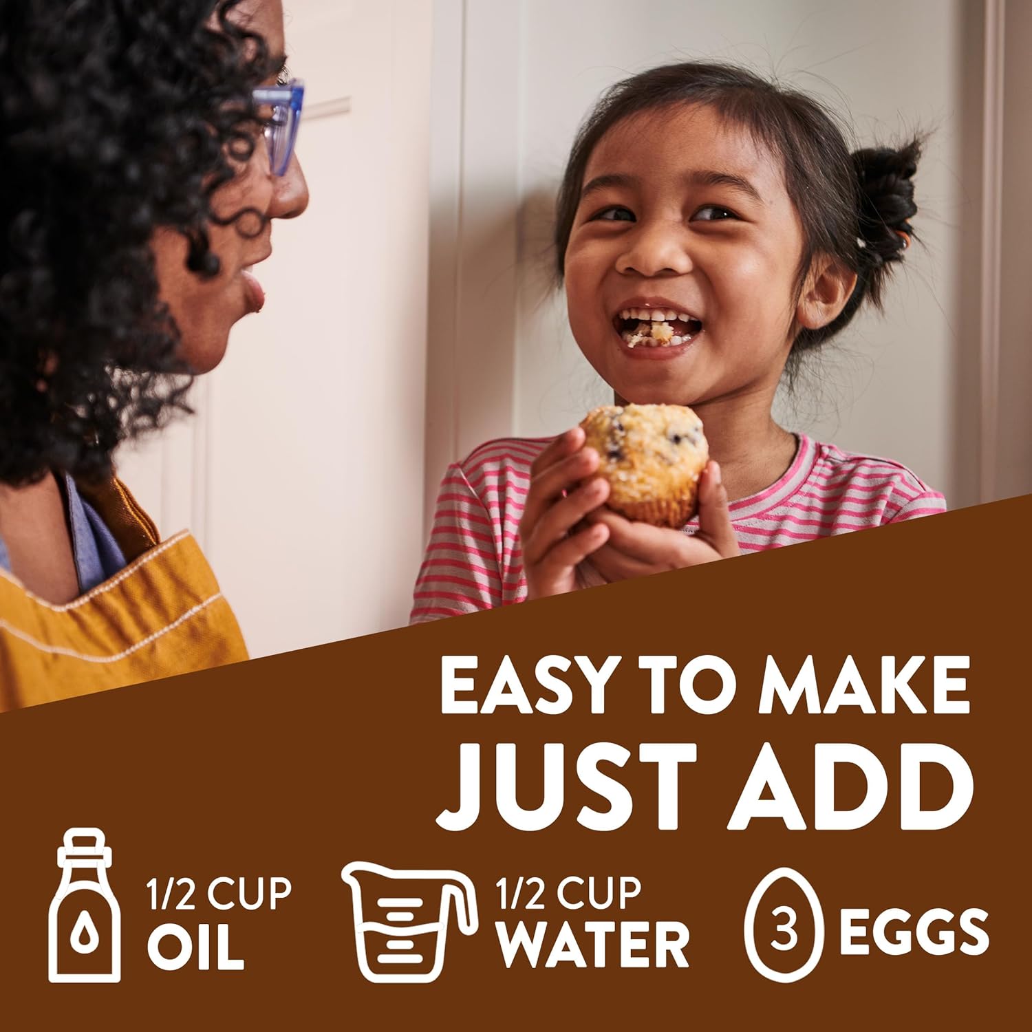 - EASY TO MAKE: Just add water, oil and eggs to the mix and bake until golden brown. To keep your muffins moist, seal them in a tightly covered container.