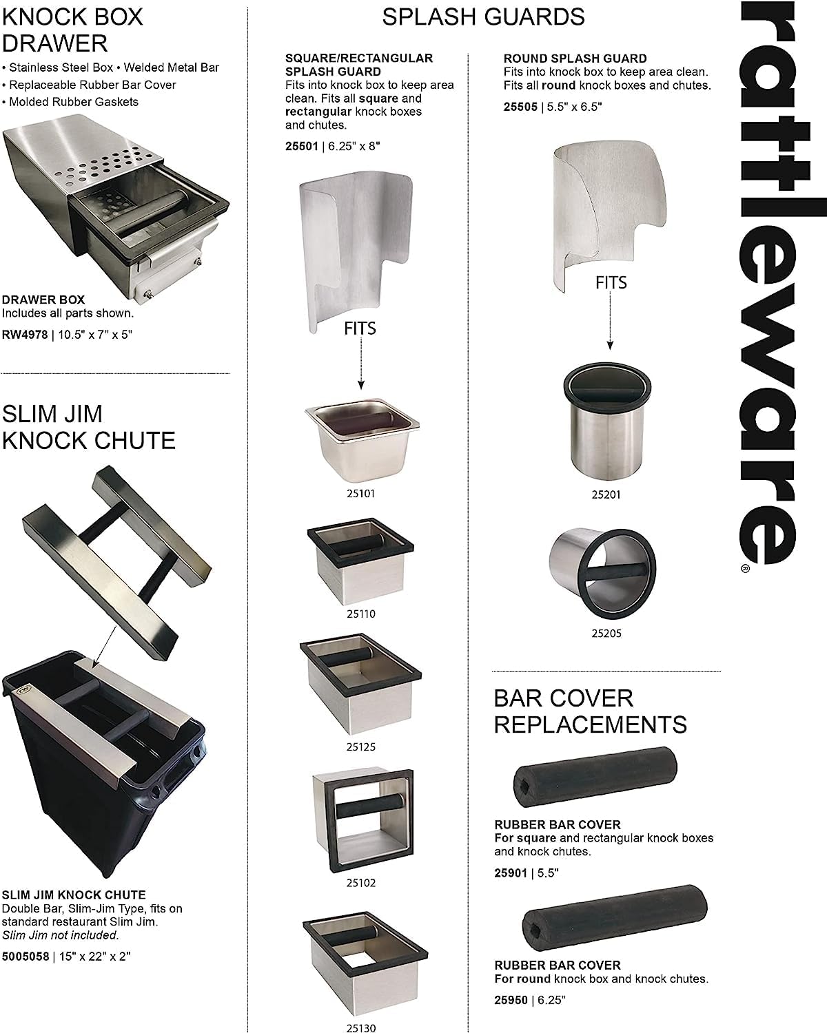 - 𝐓𝐑𝐔𝐒𝐓𝐄𝐃 𝐑𝐀𝐓𝐓𝐋𝐄𝐖𝐀𝐑𝐄 𝐐𝐔𝐀𝐋𝐈𝐓𝐘: Manufactured by Rattleware, the gold standard in coffee accessories and espresso tools. This knock box meets strict food service requirements, offering years of reliable service in commercial cafes and home espresso stations.
