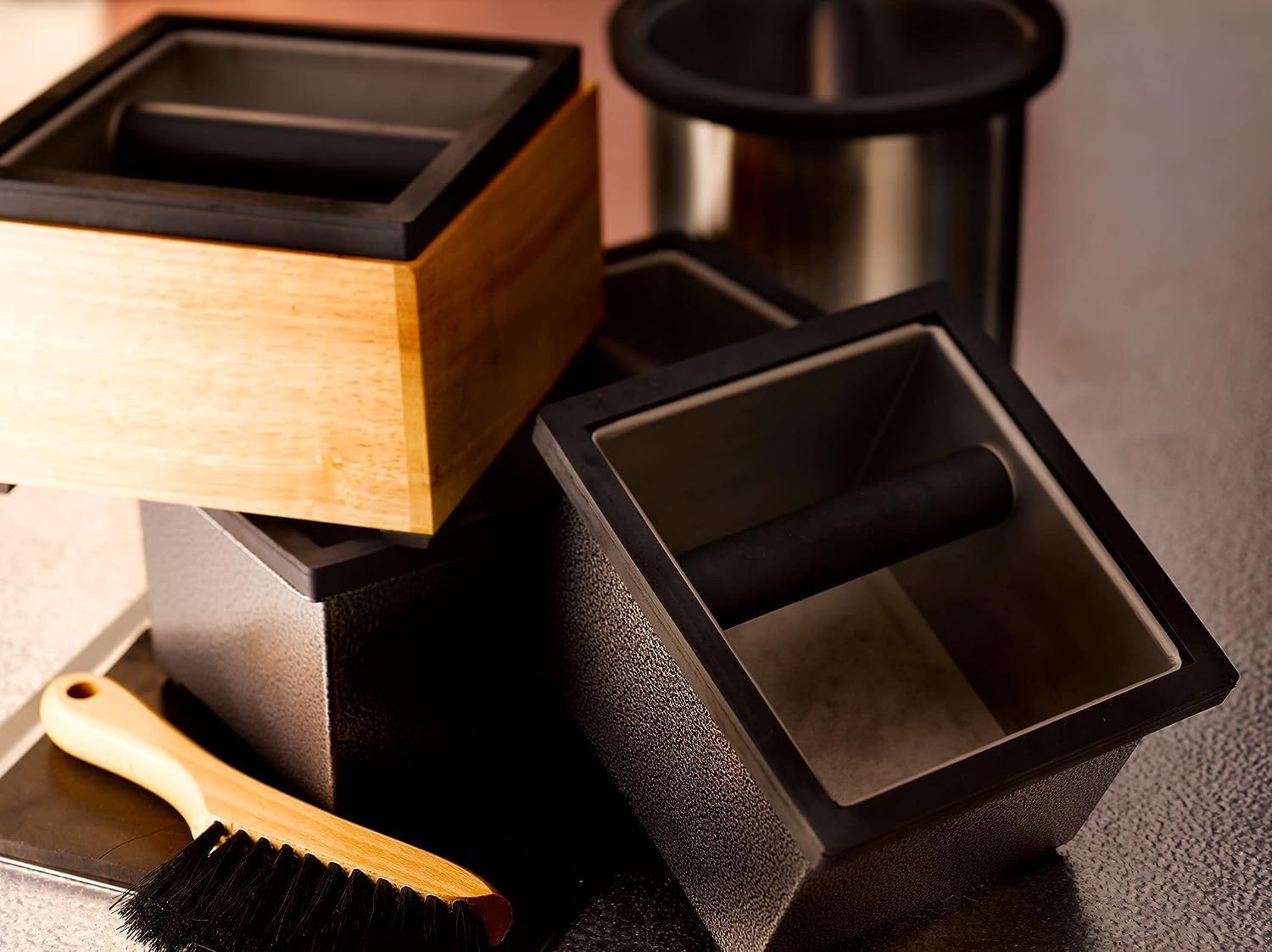 - 𝐎𝐏𝐄𝐍 𝐁𝐎𝐓𝐓𝐎𝐌 𝐃𝐄𝐒𝐈𝐆𝐍: Open bottom design of this knock box allows clean and efficient espresso grounds disposal under the counter. For this feature, waste falls directly into a bin out of sight. Keeps the coffee bar clean and simplifies daily cleanup tasks.