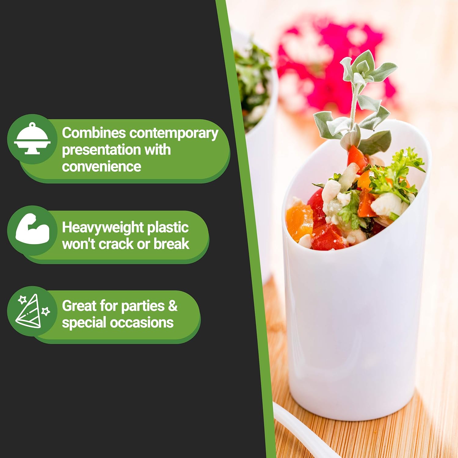 - CONVENIENTLY DISPOSABLE: These plastic incline shot glasses are conveniently disposable, making your entertaining experience seamless. Don't worry about tedious dishwashing process.