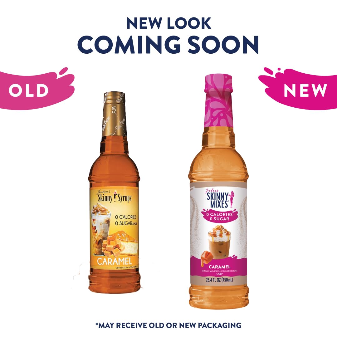 Jordan's Skinny Syrups Sugar Free Coffee Syrup, Caramel Flavor Drink Mix, Zero Calorie Flavoring for Chai Latte, Protein Shake, Food & More, Gluten Free, Keto Friendly, 25.4 Fl Oz, 6 Pack