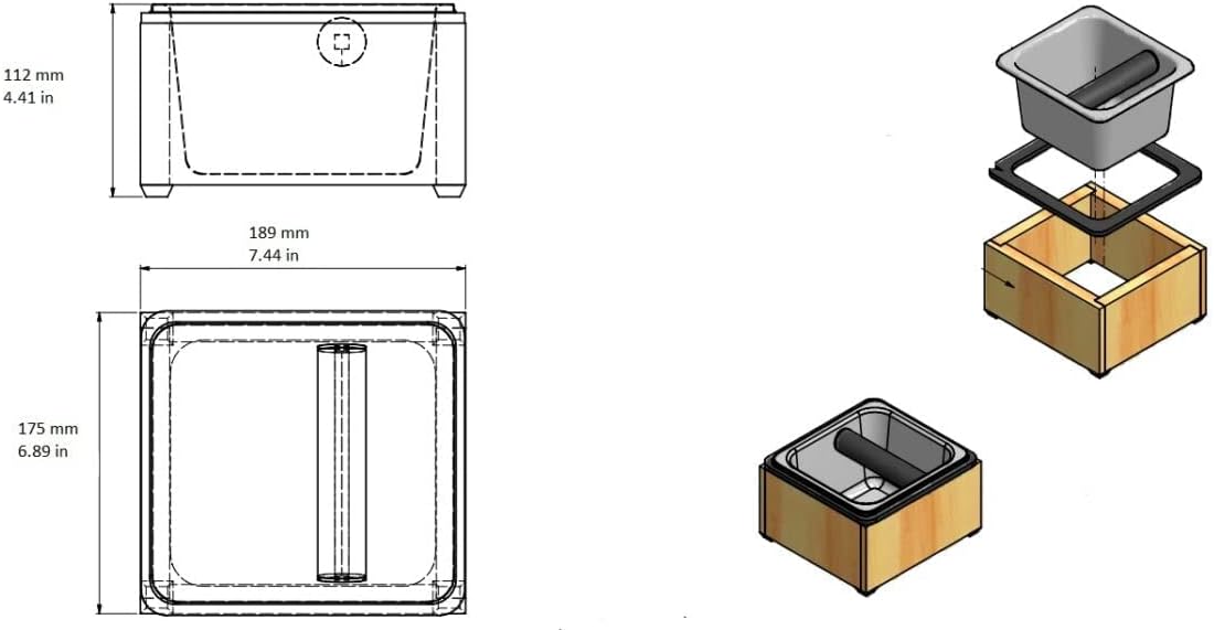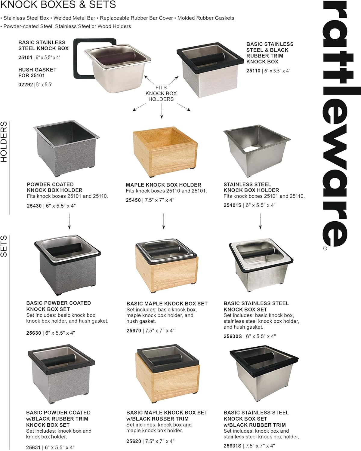 - 𝐍𝐎𝐈𝐒𝐄 𝐑𝐄𝐃𝐔𝐂𝐓𝐈𝐎𝐍 𝐖𝐈𝐓𝐇 𝐌𝐀𝐏𝐋𝐄 𝐇𝐎𝐋𝐃𝐄𝐑: The knock box includes a maple wood base to absorb sound. Minimizes clinks and clangs while knocking espresso pucks. Creates a quieter workflow behind the bar.