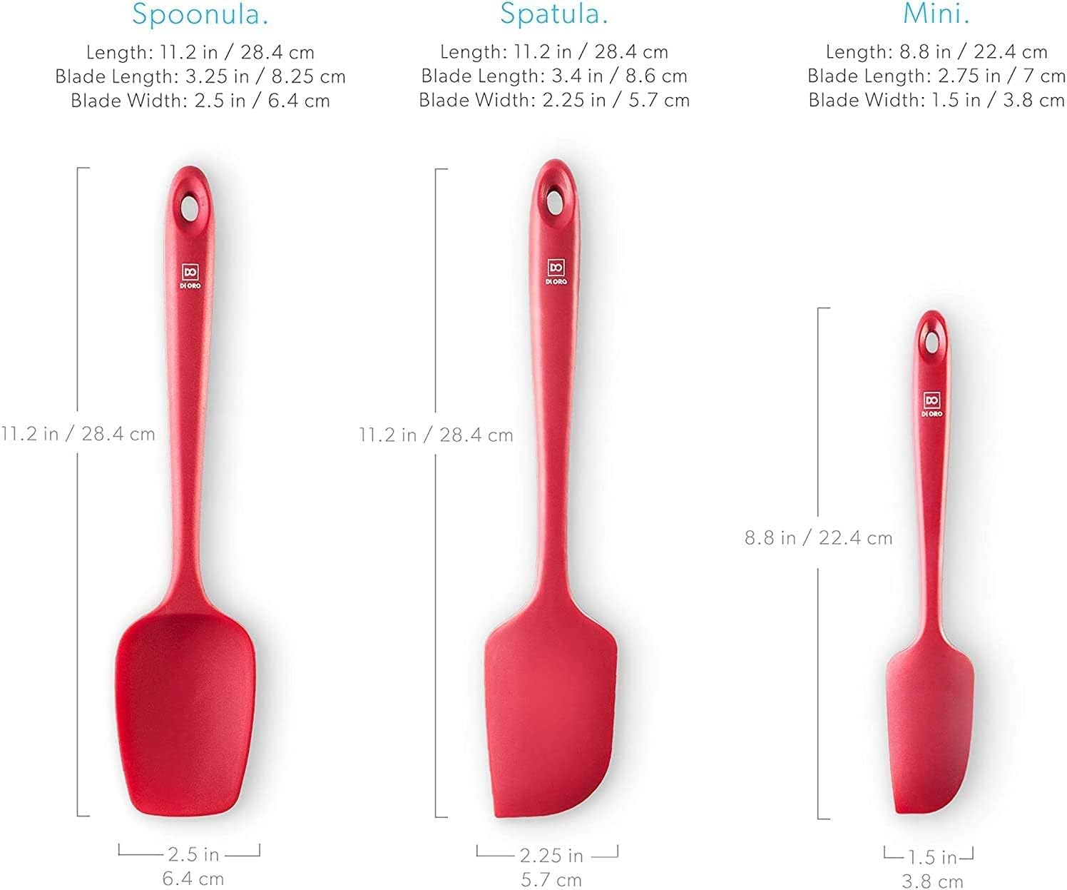 di Oro Living Silicone Spatula Set - 3-piece 600F Heat-Resistant Baking Spoon & Spatulas - Ergonomic Easy-to-Clean Seamless One-Piece Design - Pro Grade Non-stick Rubber with Stainless Steel S-Core Technology! (Red)