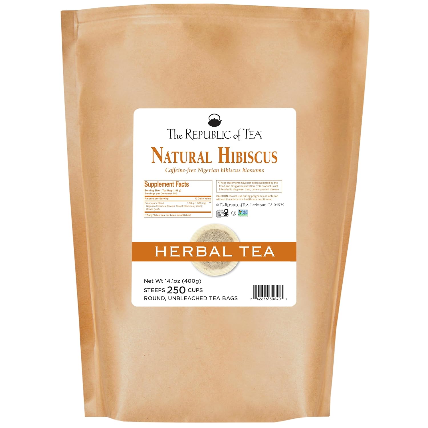 The Republic of Tea Natural Hibiscus Superflower Herbal Tea, 250 Tea Bags, Ruby Red Hibiscus Fine Blend