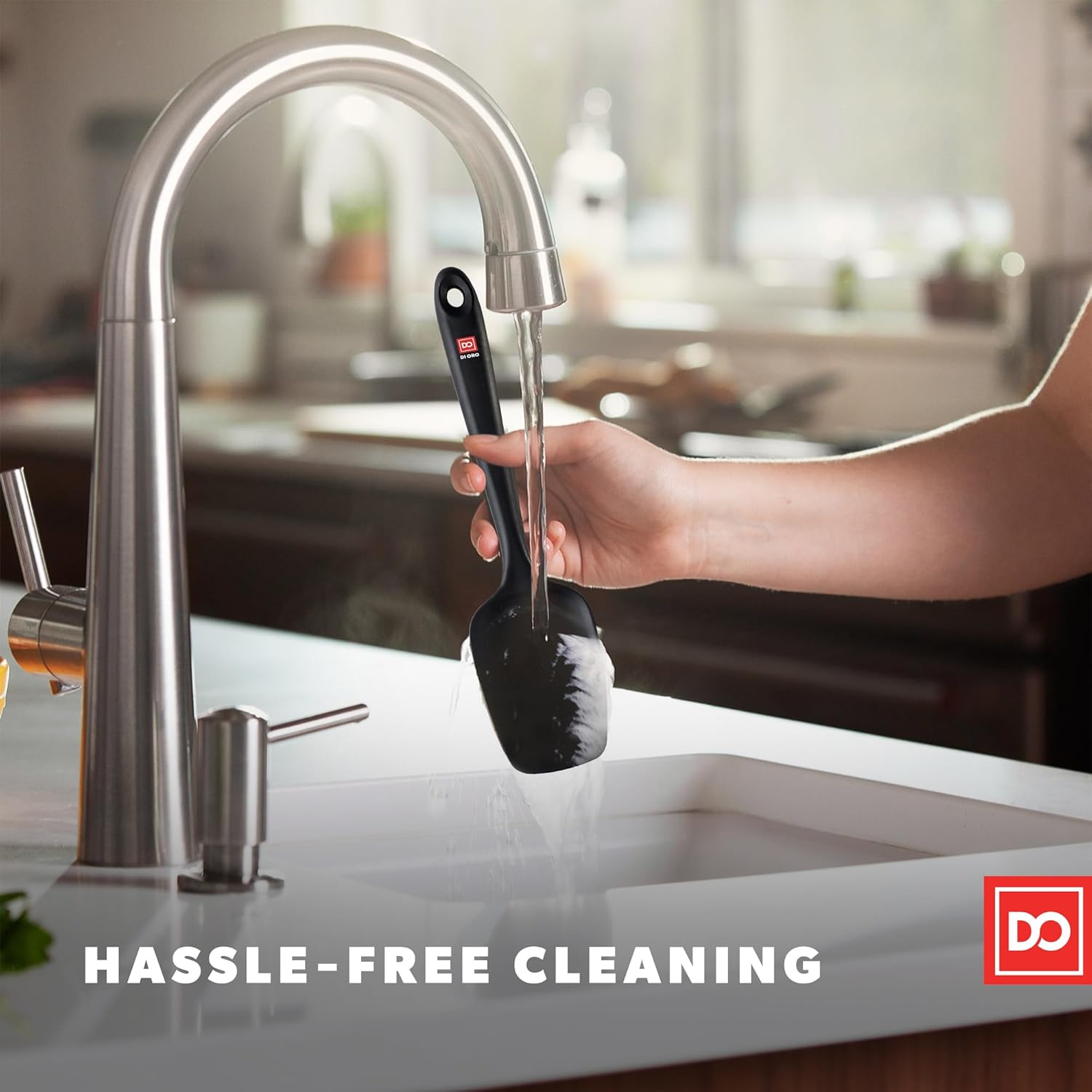 DI ORO Seamless Series Silicone Spoon Spatula - BPA Free Pro-Grade Non-Stick 600ºF Heat-Resistant Rubber Spoonula - Versatile Silicone Kitchen Scraper Utensil for Baking and Cooking (Black)