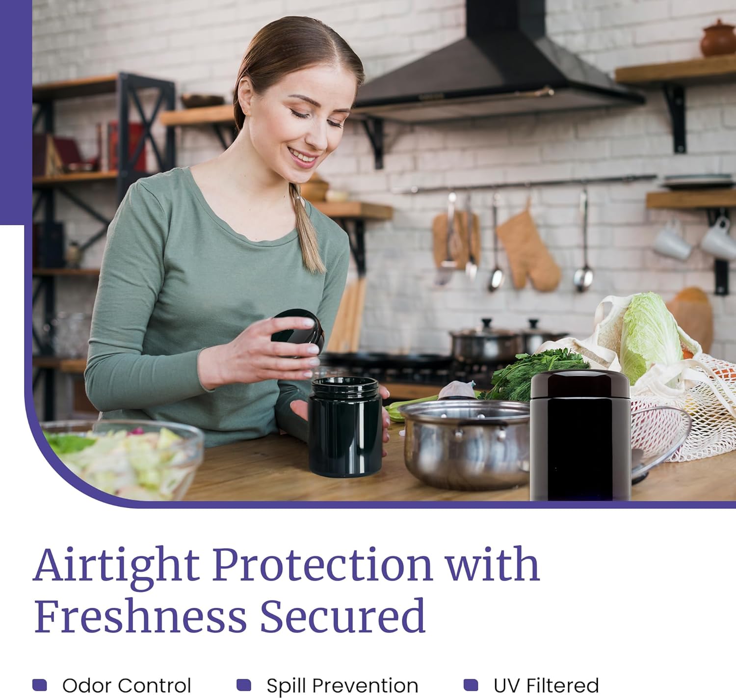 - ๐๐ถ๐ฟ๐๐ถ๐ด๐ต๐ ๐ฎ๐ป๐ฑ ๐ฆ๐บ๐ฒ๐น๐น-๐ฅ๐ฒ๐๐ถ๐๐๐ฎ๐ป๐ ๐๐ถ๐ฑ: Designed with a precision screw-top closure, these jars create a tight seal that helps keep contents fresh while containing strong aromas. The odor-resistant design ensures safe storage for coffee, spices, or dried ingredients, making it ideal for kitchens, pantries, and on-the-go use where secure containment is essential