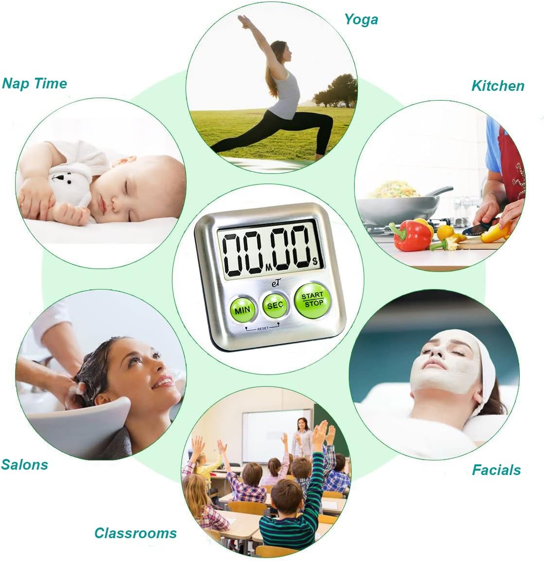 - “Great Little Timer” 2025 Model: We eliminated the annoying little button beeps every time buttons are pressed. New lanyard attachment feature for hanging timer around neck belt or wrist. Adjustable angle fold-out countertop kickstand. Counts up/down 99 min/59 sec w/ Auto-Memory for repeated tasks. Auto-Memory holds previous setting for the next event. Want 3 min eggs every morning? Set time once and only press start every morning. 3 min. will stay in memory until reset & new time is entered.