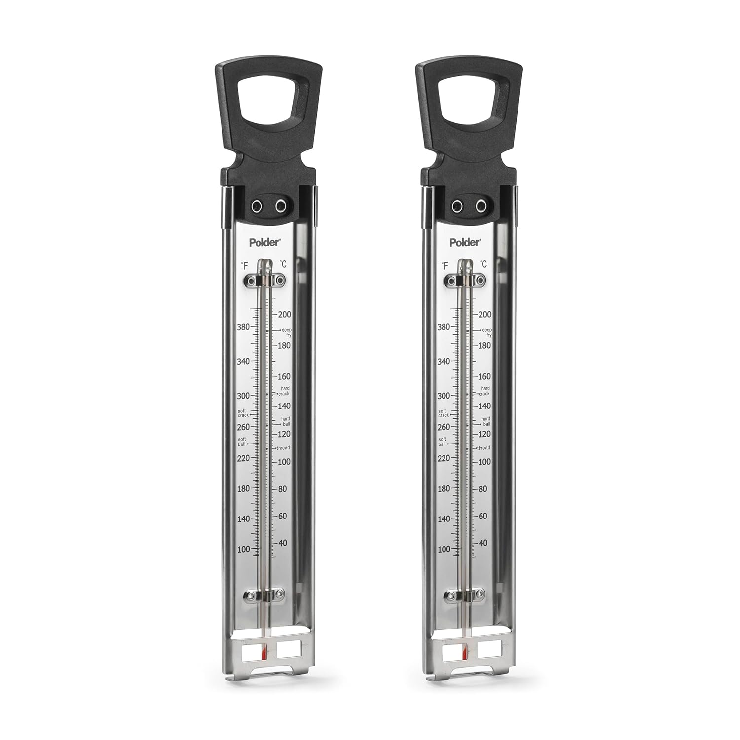 Polder Candy/Jelly/Deep Fry Thermometer, Stainless Steel, with Adjustable Sliding Pot Clip Attachment and Quick Reference Temperature Guide