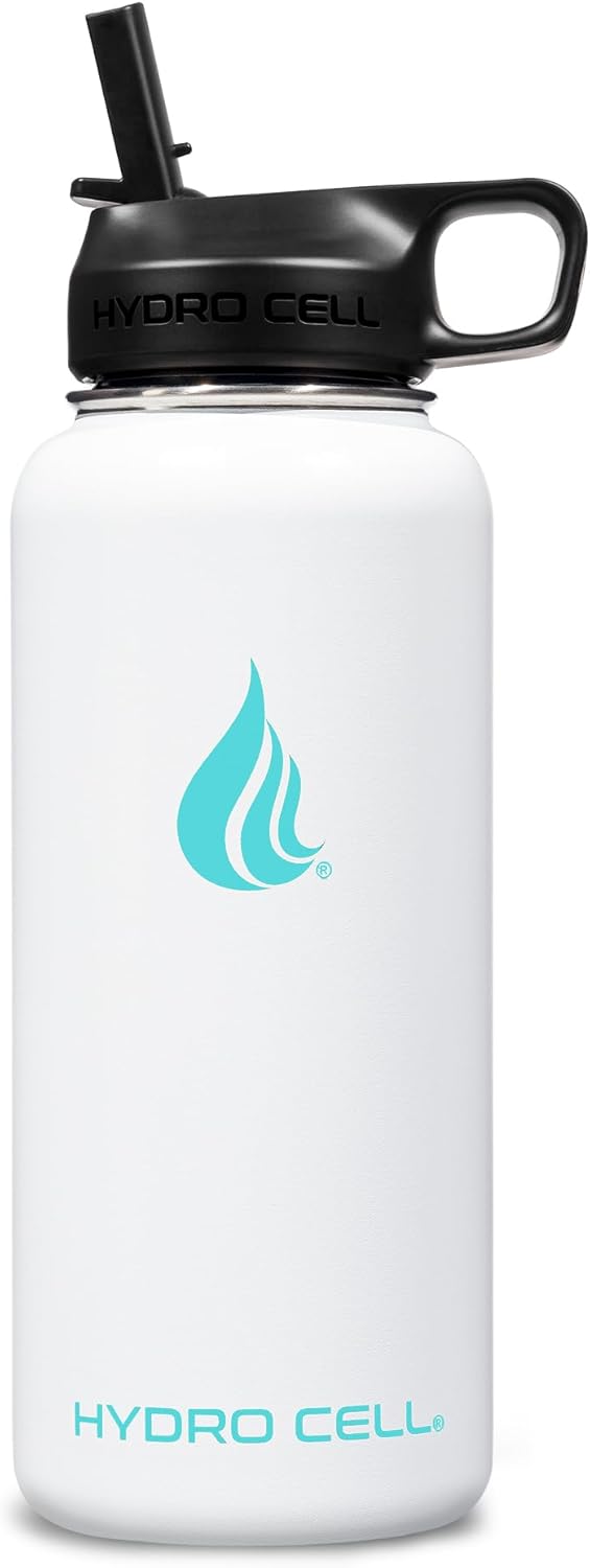 HYDRO CELL Stainless Steel Insulated Water Bottle with Straw - For Cold & Hot Drinks - Metal Vacuum Flask with Screw Cap and Modern Leakproof Sport Thermos for Adults (White 32oz)