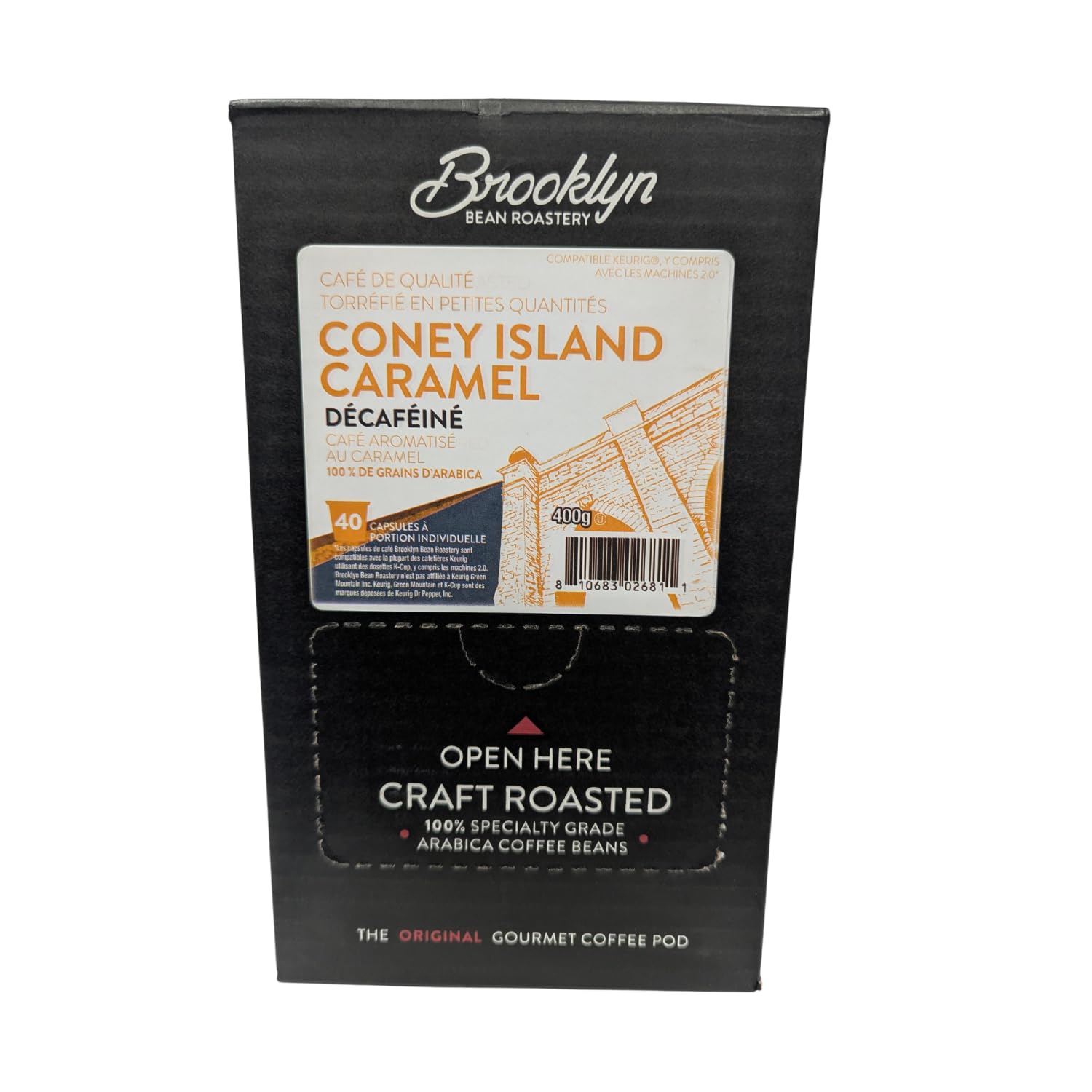 Brooklyn Beans Coffee Pods, Coney Island Caramel Decaf - Compatible with Keurig K Cup Brewers Including 2.0 Machines, 40 Count, Creamy Caramel Flavor