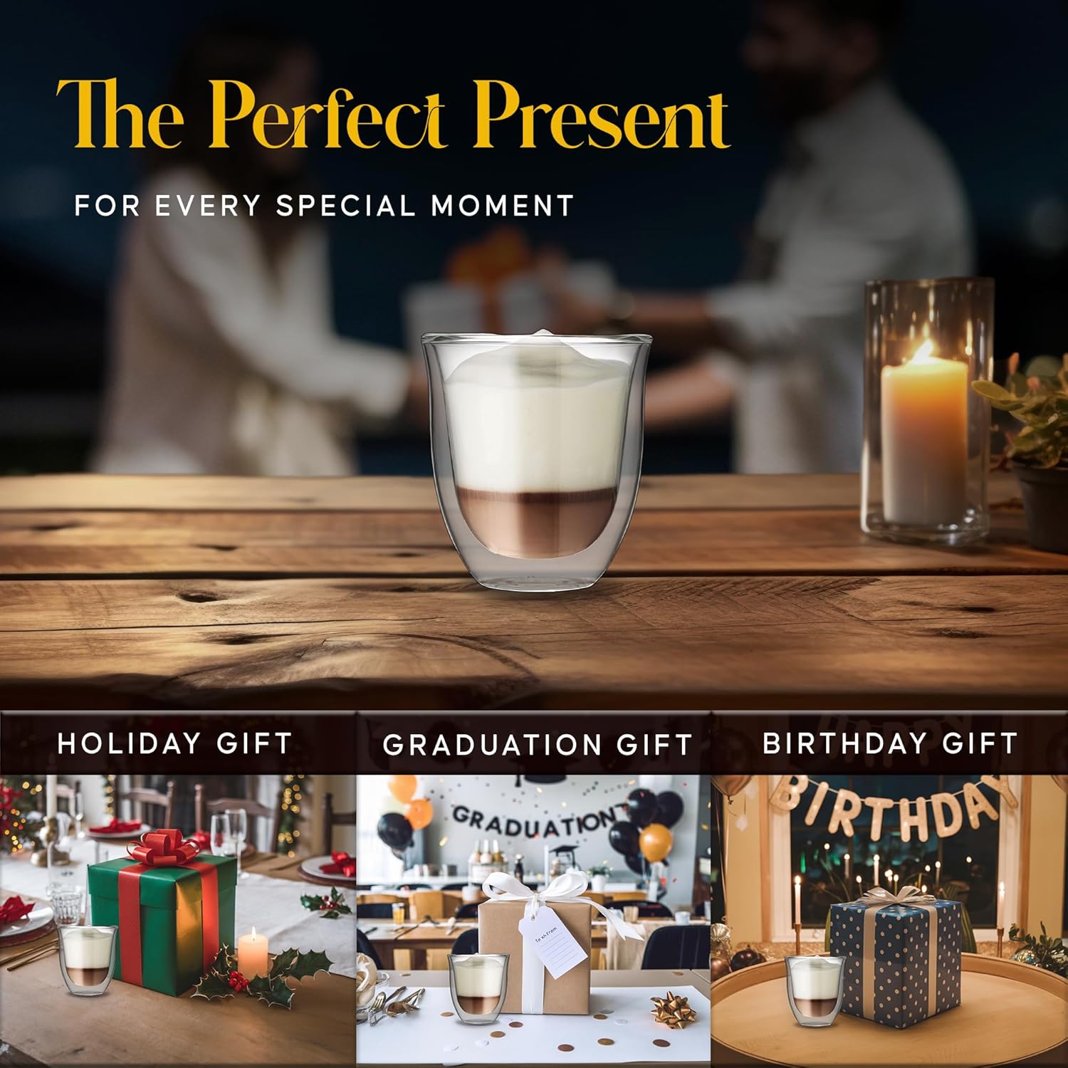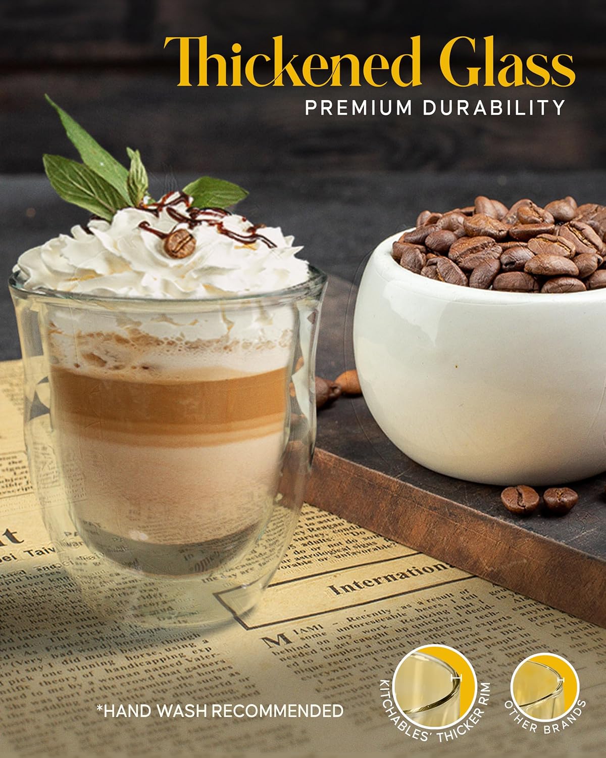 - Thoughtful Gift For Any Occasion - Enjoying your cappuccino or latte mug? Share the joy with others! Functional and stylish, Kitchables’ double walled glass coffee mugs are practical, memorable gifts for your loved ones.