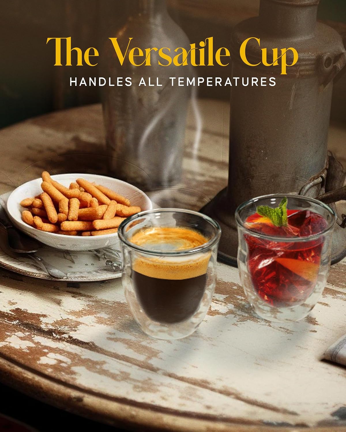 - Enjoy Hot or Cold Drinks Even Longer - Crafted with precision, our double walled glass coffee mugs ensures your hot drinks stay hot and your cold drinks stay cold, allowing you to relish every sip without compromise. Say hello to extended enjoyment with these clear glass coffee mugs that are as versatile as they are stylish. ¡Disfruta de tus bebidas calientes o frías por más tiempo con estas tazas para café de vidrio transparente de Kitchables!