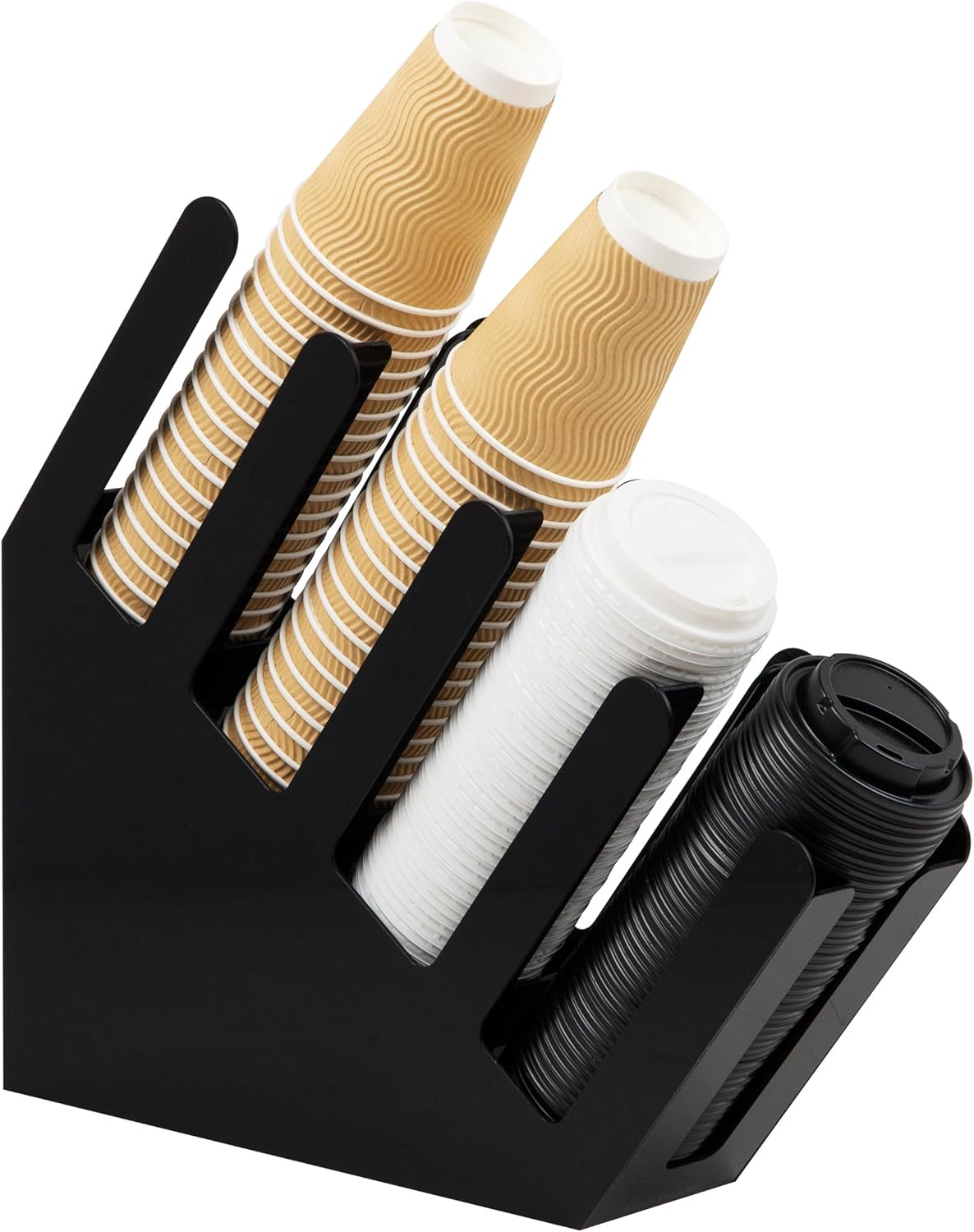 - Effortless stacking: The angled design of the coffee cup and lid dispenser allows for easy stacking of cups and lids, enabling quick and convenient access to your next cup of coffee