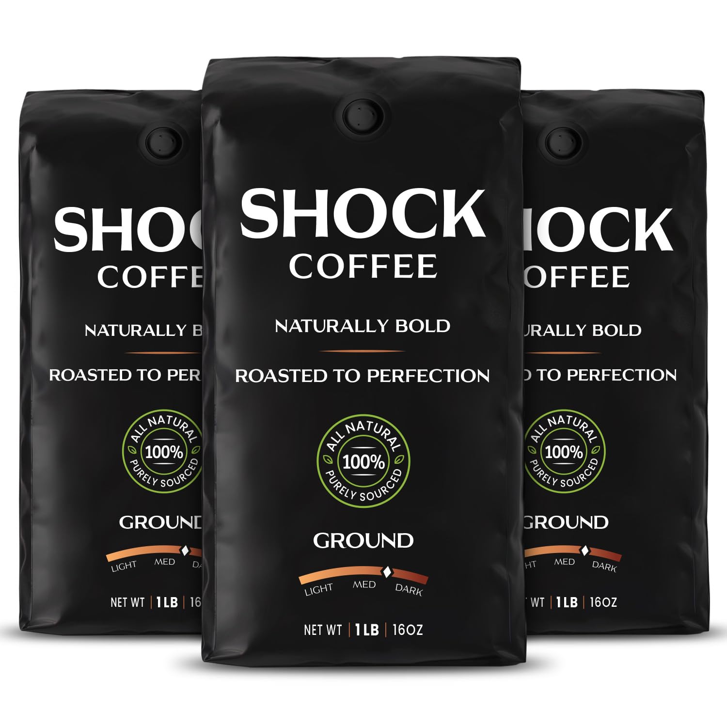 Shock Coffee Ground, The Strongest Caffeinated All-Natural Coffee, Up to 50% more Caffeine. 3 pounds