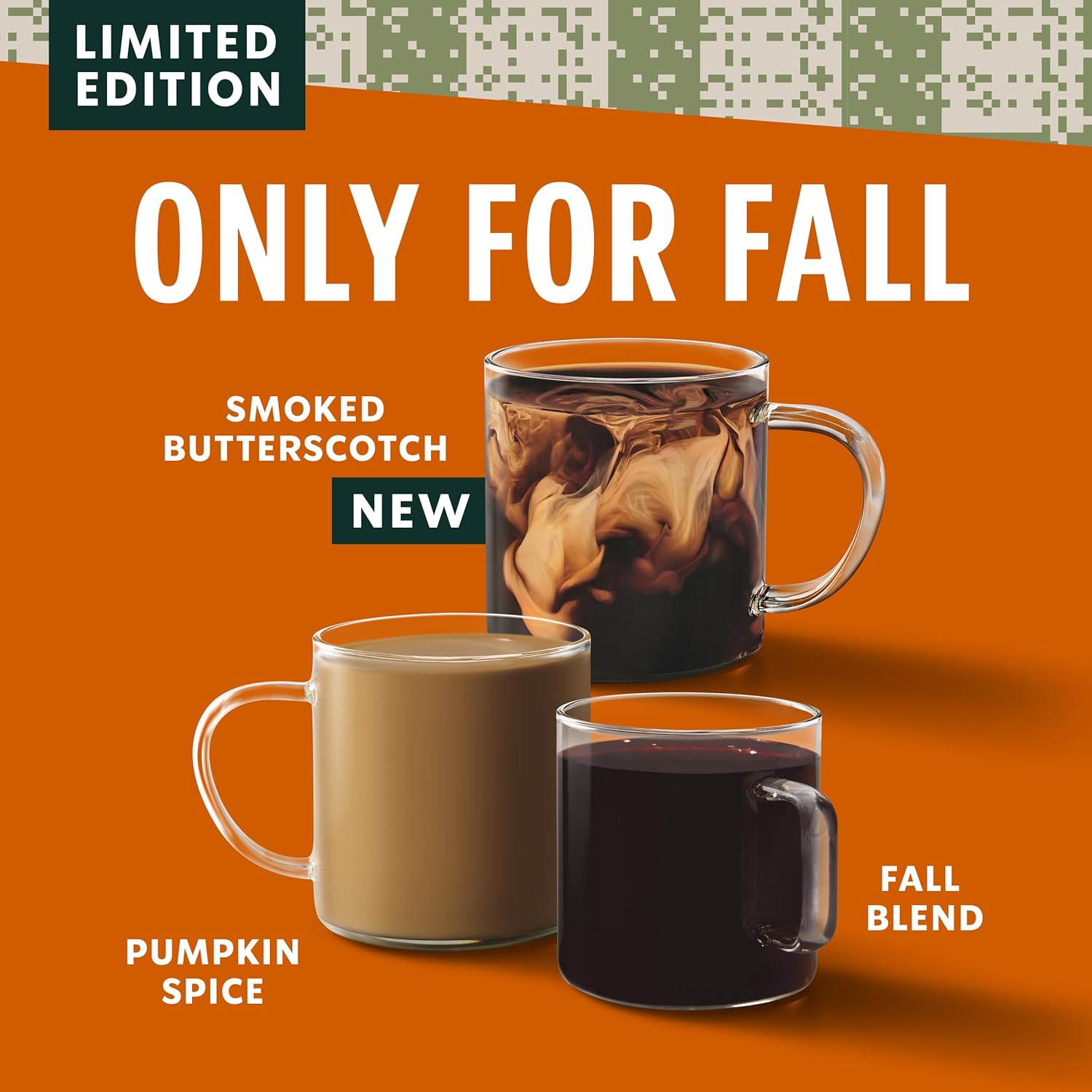 - PERFECT FALL PICKS: With seasonals like Starbucks Pumpkin Spice Naturally Flavored Coffee, Starbucks Smoked Butterscotch Naturally Flavored Coffee and Starbucks Fall Blend, you can find the perfect fall picks for your cup and savor every sip