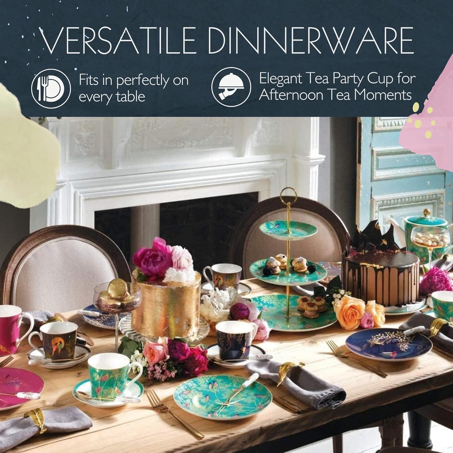 - Enchanting Emerald Design: With pink and gold birds set against an emerald green backdrop, this 12oz fine china tea cup brings visual delight to your morning brew or tea ritual.