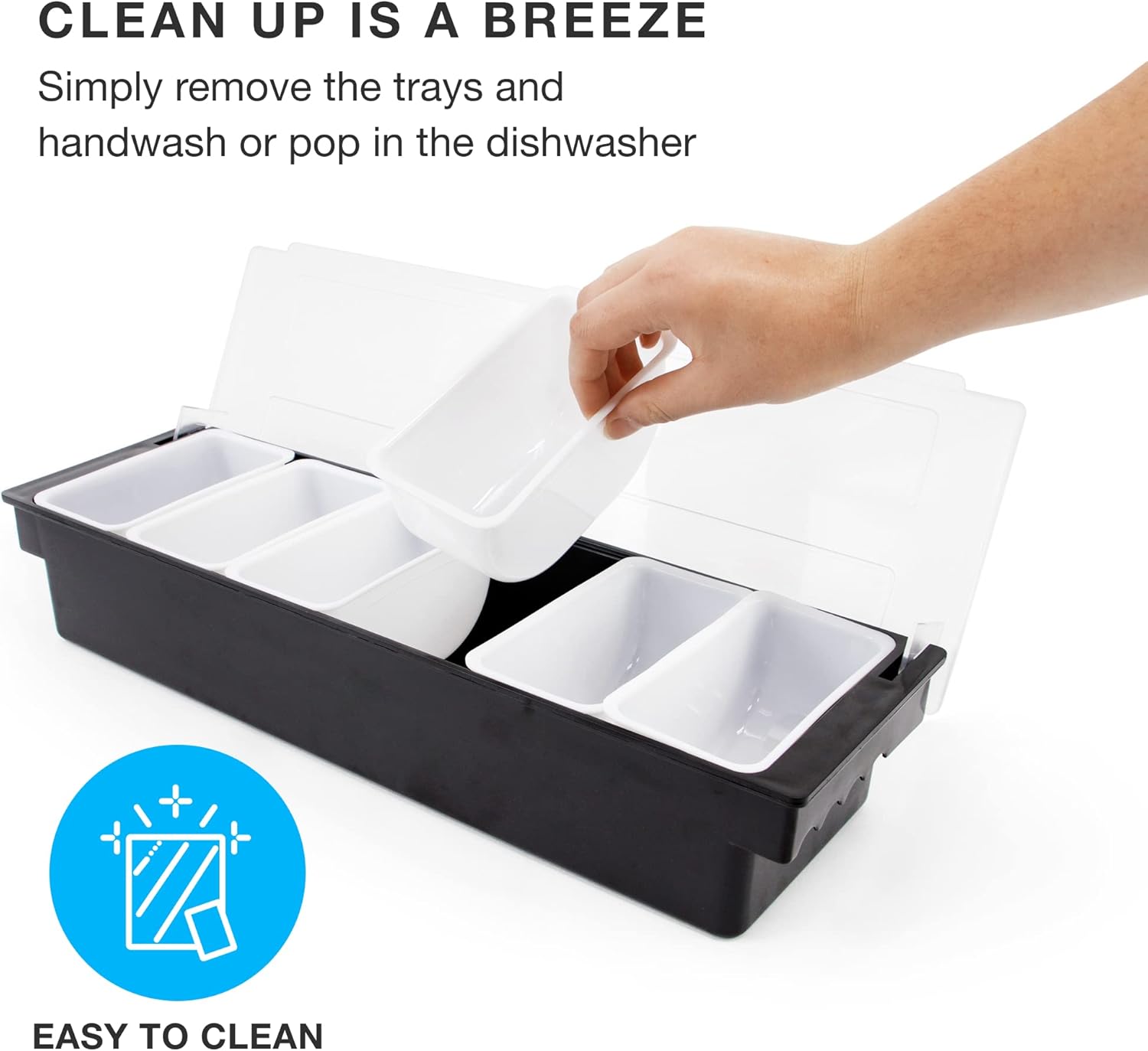 - Durable & Easy to Wash - Made from sturdy plastic and includes ergonomic finger grips on each side. The trays are top rack dishwasher safe, and the unit can be simply wiped down with a warm wet cloth. A must have for restaurant supplies, catering supplies, and bartending supplies