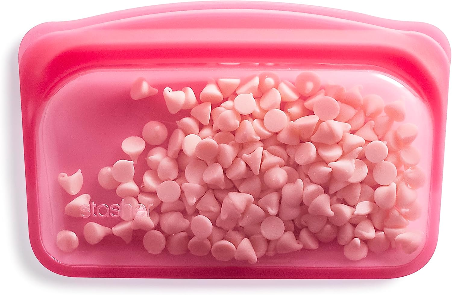 Stasher Premium Silicone Reusable Food Storage Snack Bag, Raspberry, Microwave, Sous Vide, Dishwasher, Oven and Freezer Safe, BPA Free, Leak-free, Eco-friendly, 12 Oz