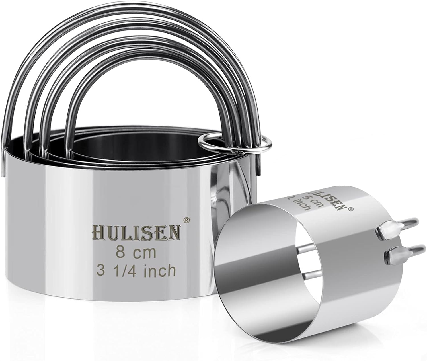 HULISEN Biscuit Cutter Set (5 Pieces/Set), Round Cookies Cutter with Handle, Professional Baking Dough Tools, Gift Package