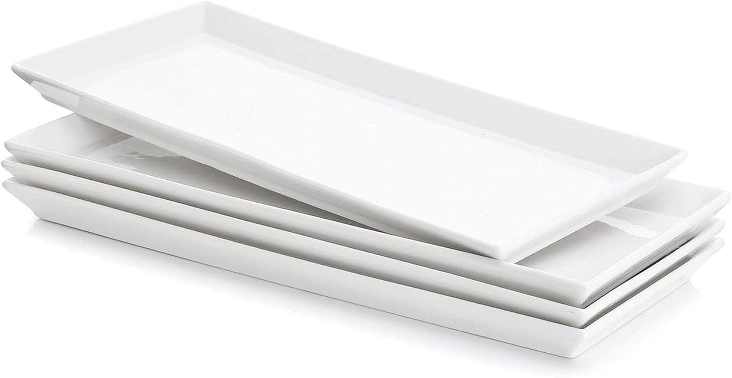 Sweese Rectangular Porcelain Platters, Serving Trays for Parties, 13.8 Inch Large Serving Dishes for Steak, Taco, Sushi, Appetizer, Cake - Dishwasher & Oven Safe - Set of 4, White