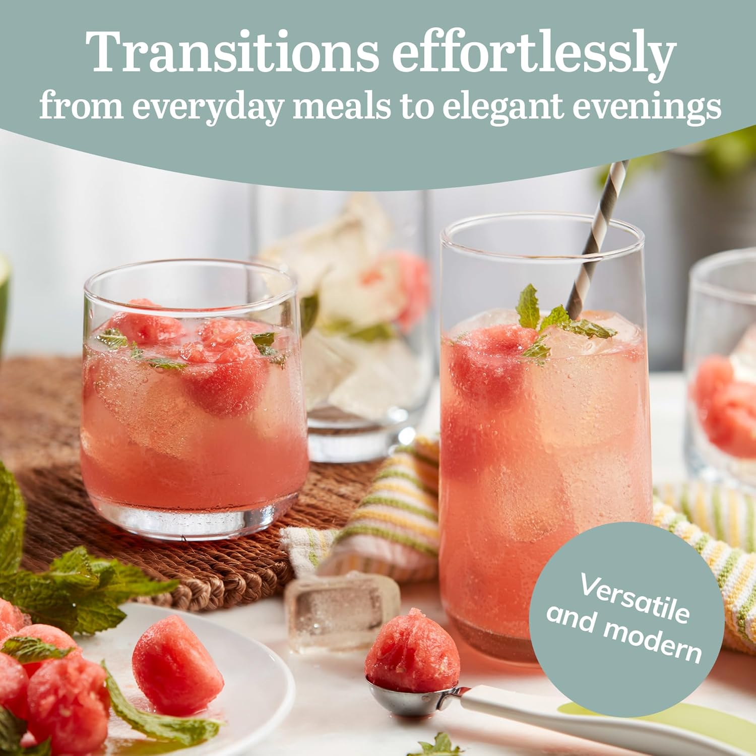 - Tumbler and Rocks Glass Set: Level up your hosting game with the perfect balance and elegance of our everyday glasses drinking set – this set of glasses includes eight 16 oz tumbler glasses and eight 13.3 oz rocks glasses