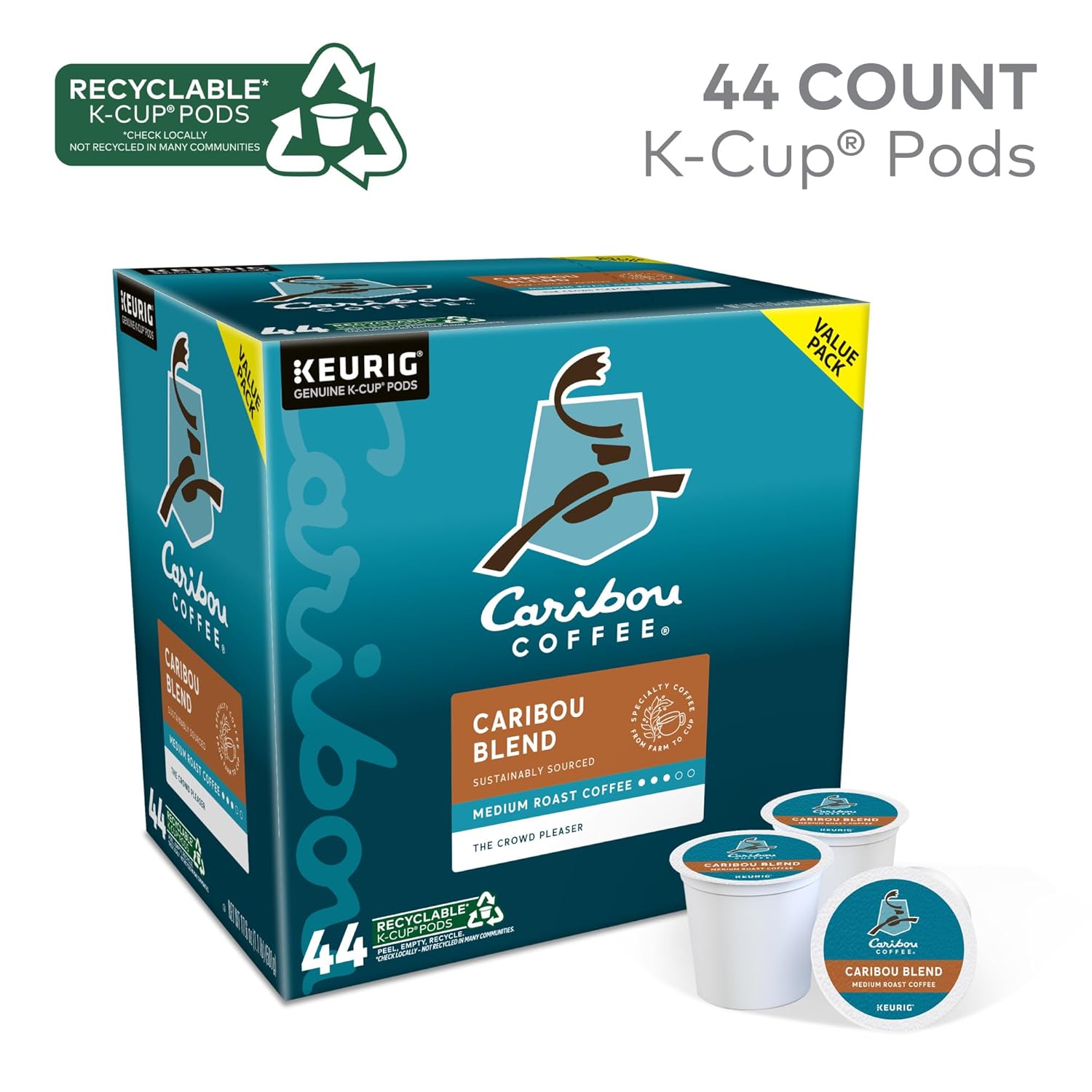 Caribou Coffee Caribou Blend Keurig Single-Serve K-Cup Pod, Medium Roast Coffee, 44 Count(Pack of 1)