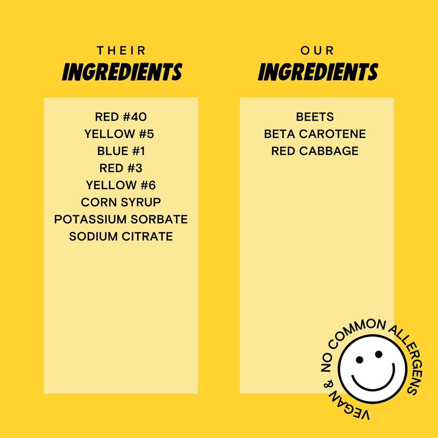 - NO NASTIES: Our plant-based colors are made without artificial dyes, artificial preservatives, or allergens. They're also non-GMO, gluten free, vegan, and Certified Kosher.