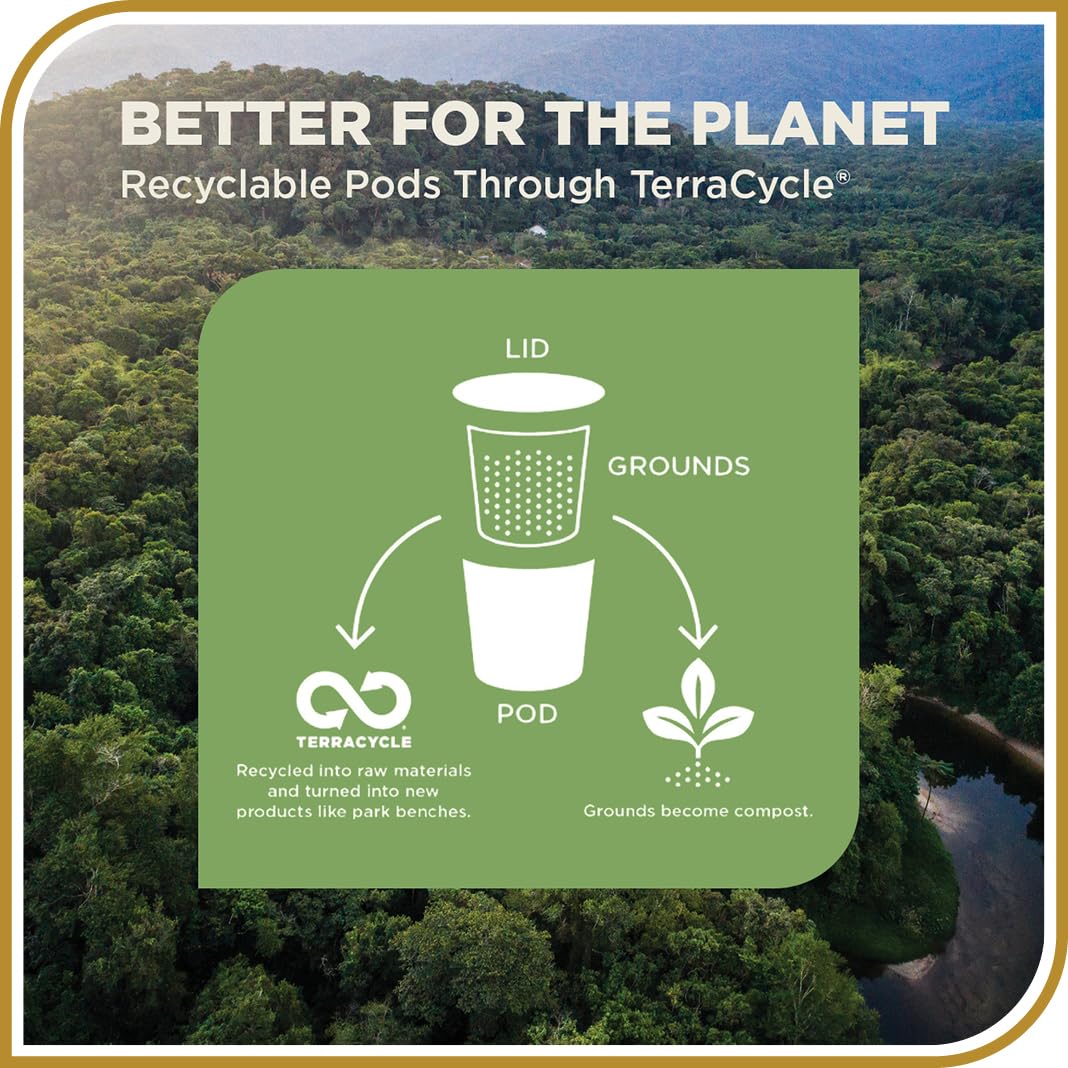 - Convenience Meets Sustainability: Enjoy the ease of single-serve coffee pods while being waste conscious. Our k cup coffee pods are recyclable through TerraCycle, supporting our commitment to sustainable practices.