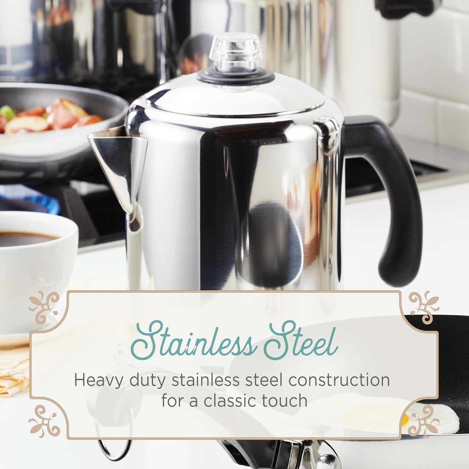 - CLASSIC COFFEE MAKER: Make delicious coffee morning or evening with The Original 12-Cup Farberware Stovetop Percolator