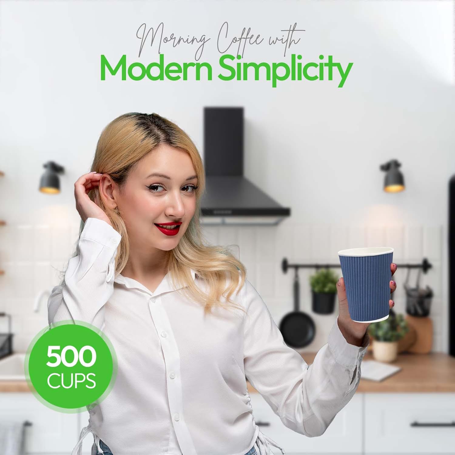 Restaurantware-12 Ounce Disposable Coffee Cups, 500 Ripple Wall Hot Cups For Coffee - Lids Sold Separately, Rolled Rim, Midnight Blue Paper Insulated Coffee Cups, For Hot Coffee, Tea, And More