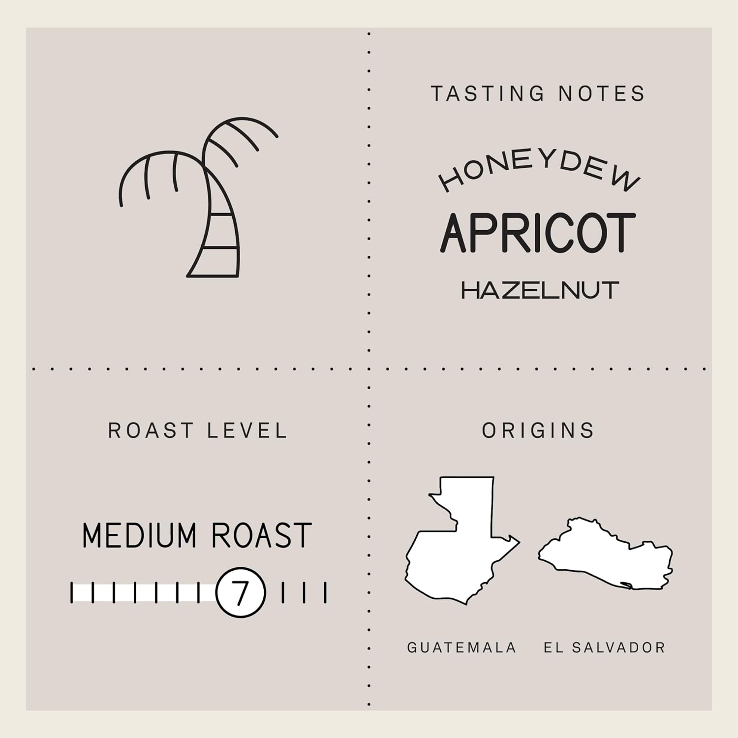 - BEHIND THE BLEND: We put extra love into developing our Seabright House Blend. It’s undeniably inviting with the flavor notes of Apricot and Honeydew composed of direct trade coffees from El Salvador and Guatemala. It gives a balanced mouthfeel and aromatics of toasted hazelnuts.
