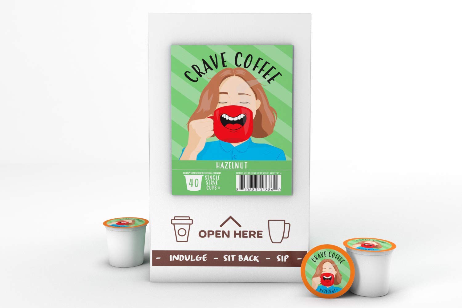 Crave Beverages Flavored Pods Compatible with 2 K-Cup Brewers, Hazelnut, 40 Count