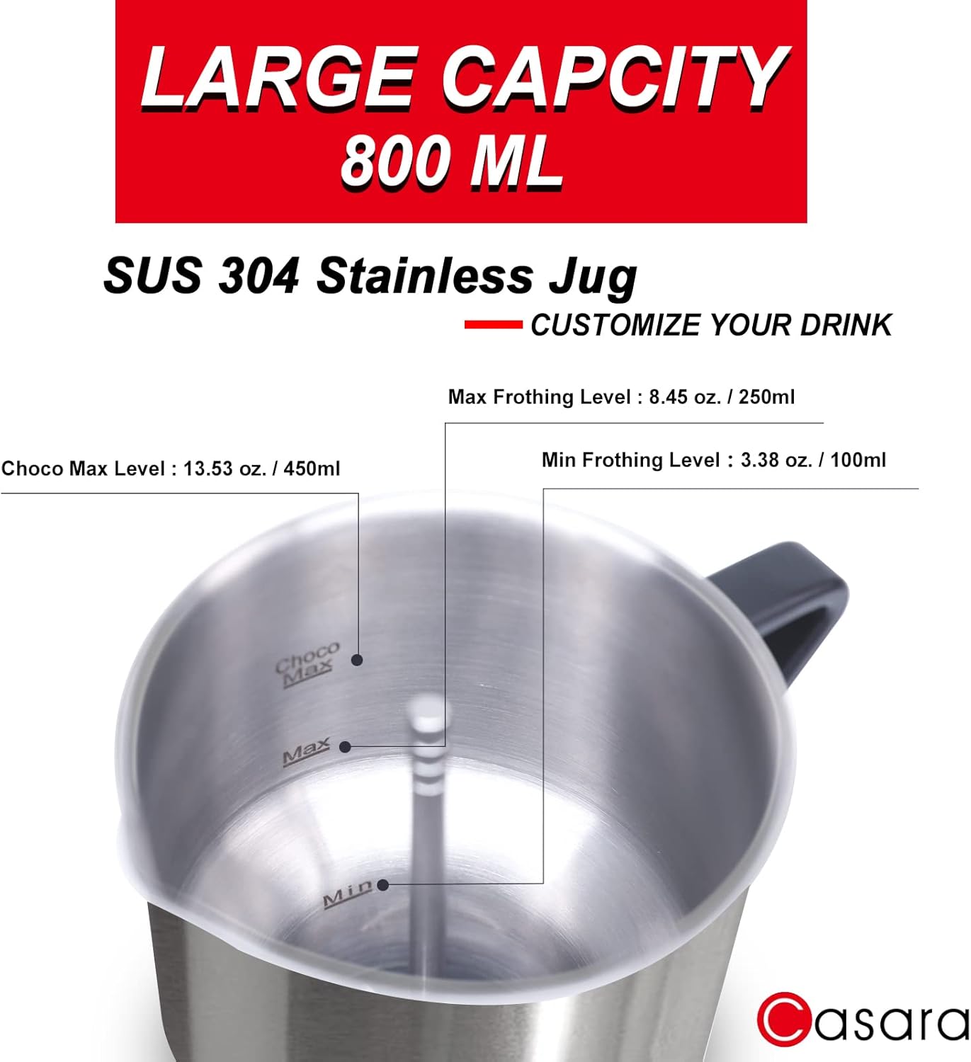 Casara 4-in-1 Electric Milk Steamer and Frother,27oz Stainless Steel Pitcher,Hot and Cold Foam Maker and Milk Warmer for Lattes,Cappuccinos,Macchiato