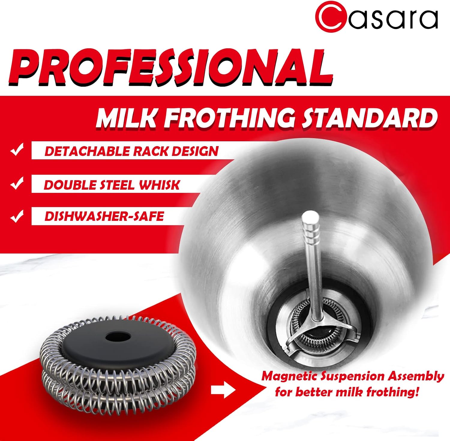 - 【27 OZ SUPER LARGE CAPACITY】The rich foam can hold 8.5 oz of milk, while the medium to low foam can hold 15 oz of milk.