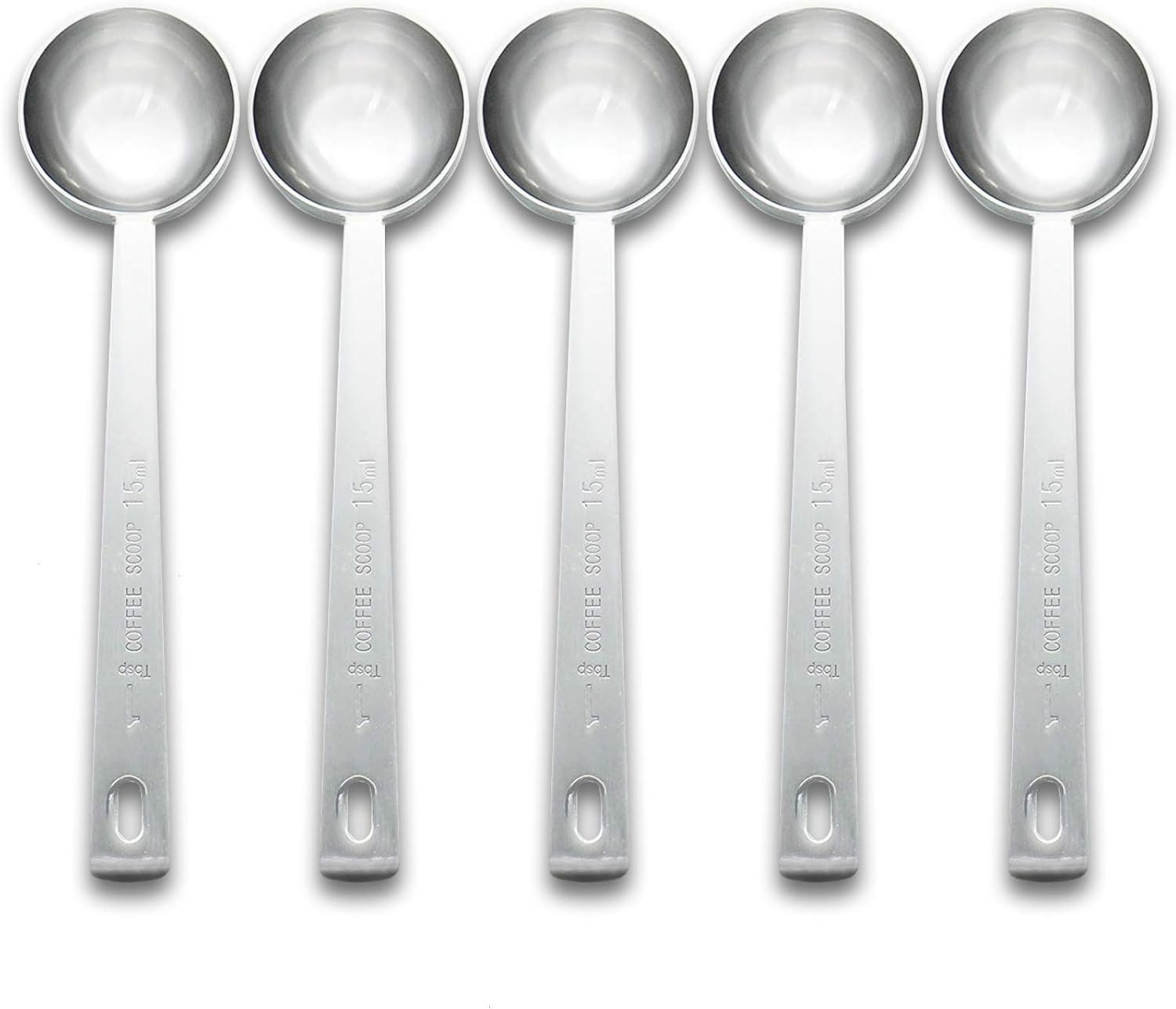 Timoo Coffee Measuring Scoop 1 Tablespoon long handle Stainless Steel spoon for Coffee, Milk Powder, Fruit Powder, Set of 5