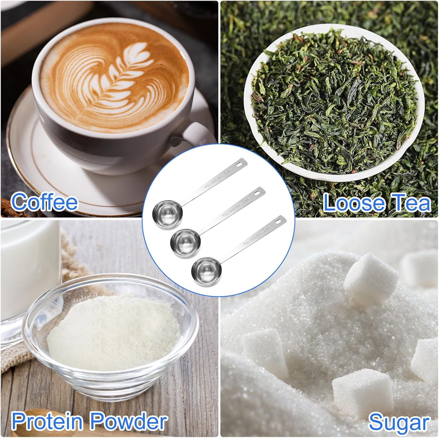 - SUITABLE FOR: Ideal for measuring coffee, cocoa, tea, flour, and creamers. Protein powder is even more. Accurate measurement, one scoop is 15ml.