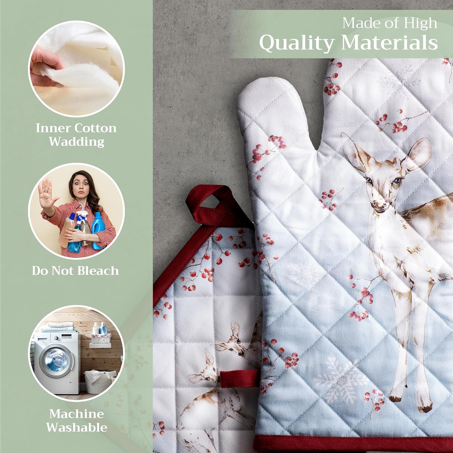 - Artistic style: Add charm to your kitchen with our oven mitt pot holder set featuring watercolor designs inspired by traditional European motifs. Stylish and functional kitchen accessories for every home cook or gift occasion.