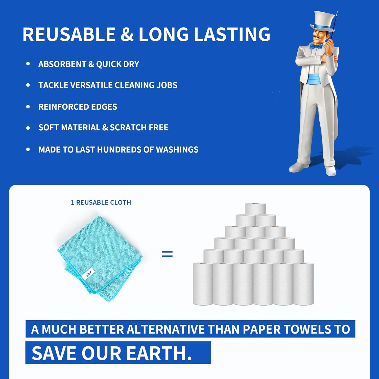 - REUSABLE & LONG LASTING - These microfiber towels feature high quality stitching with reinforced edges, they are durable and made to last hundreds of washings. They are lightweight, super absorbent and dry quickly, use them everyday to enjoy your cleaning.