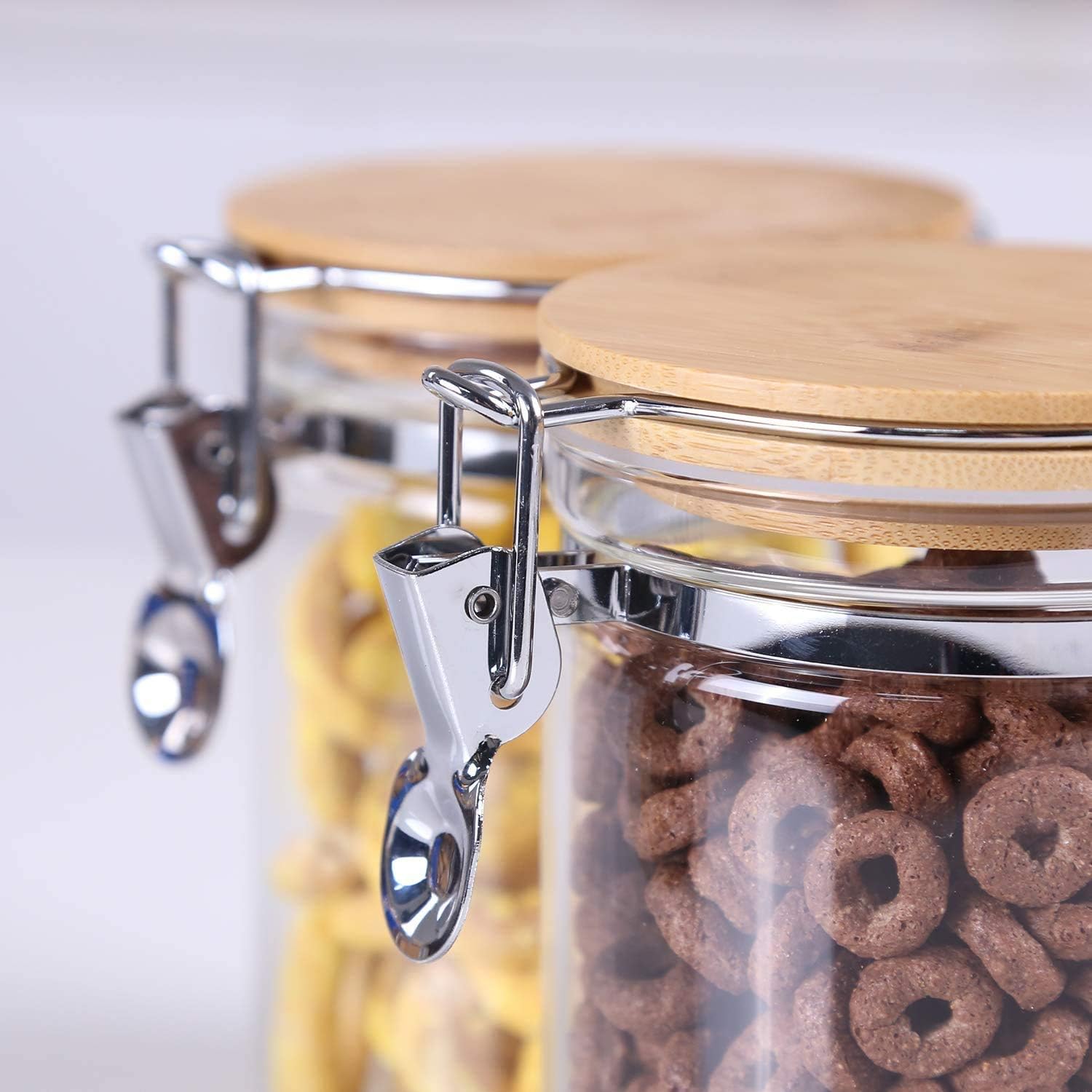 KKC HOME ACCENTS Clear Borosilicate Glass Storage Jars with Airtight Locking Clamp Lids,Glass Jar Canisters,Sealed Glass Jars with Bamboo Lid,Air tight Brown Sugar Salt Container,15 Fluid-oz