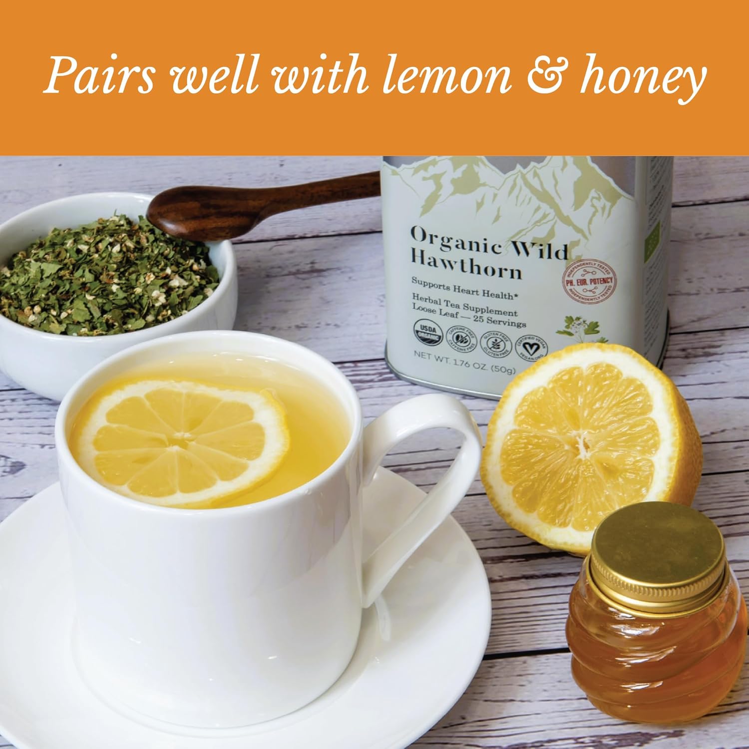Wild Bliss Organic Hawthorn Loose Leaf and Flower Tea - Caffeine Free Heart Health Herbal Support - 1.76 Oz - 25 Servings