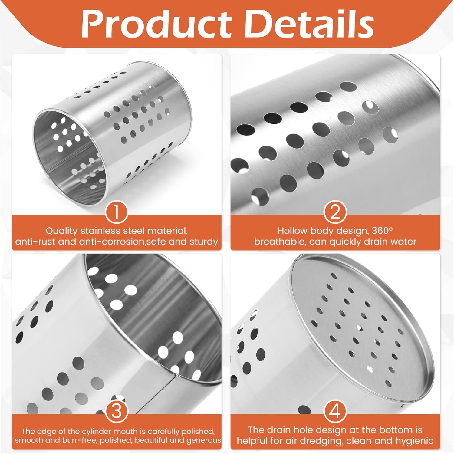 EORTA Stainless Steel Kitchen Utensil Holder Flatware Cylinder Silverware Draining Organizer Drying Rack with Round Drain Holes for Forks, Knives, Spoons, Chopsticks, Small