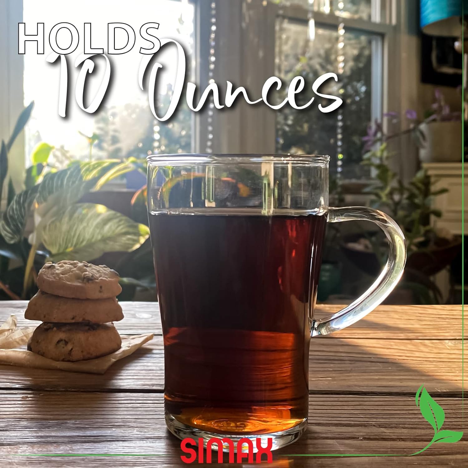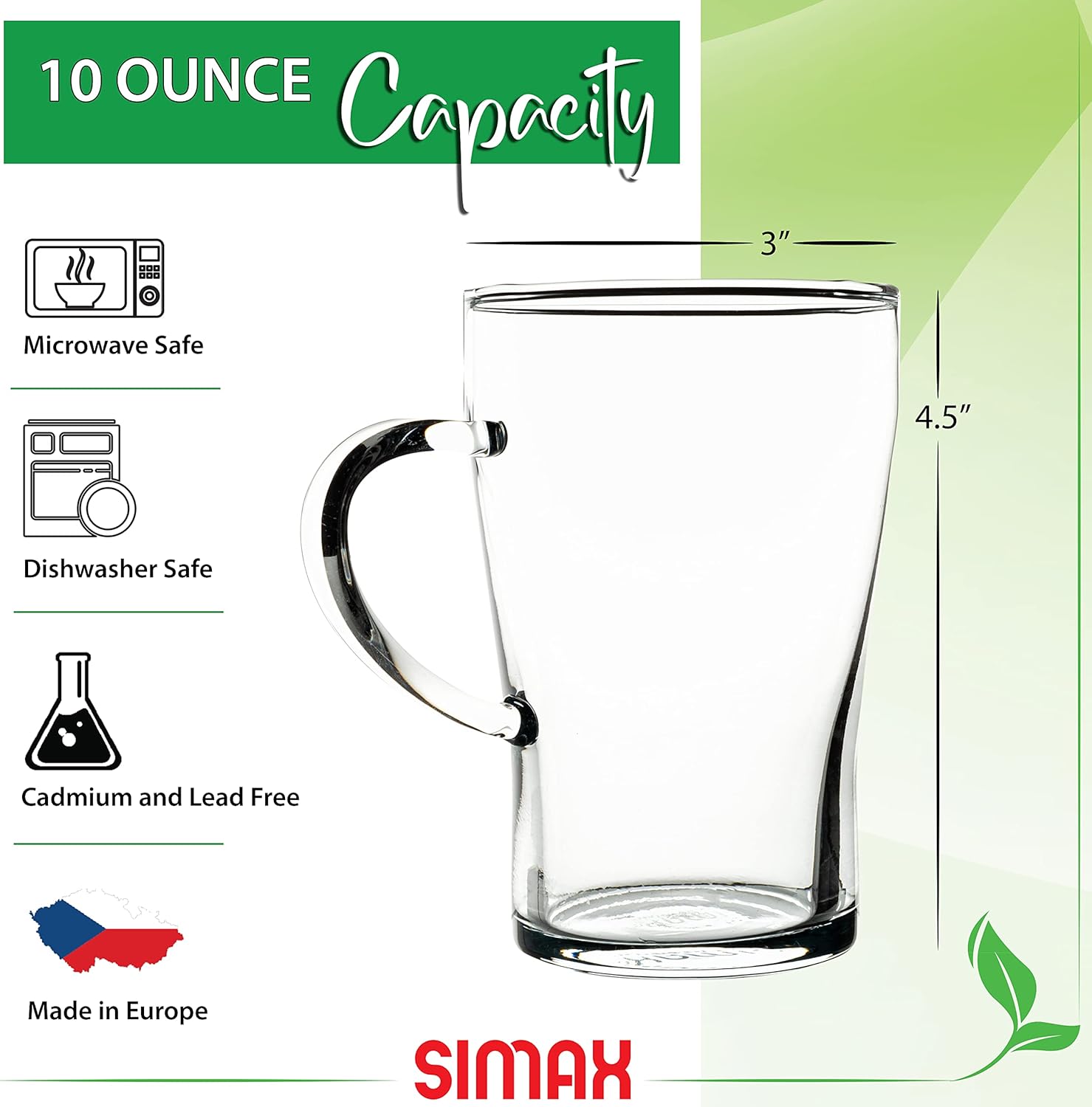 Simax Glassware Clear Glass Coffee Mug Set | Cold, Heat, and Shock Resistant Borosilicate Glass, Microwave and Dishwasher Safe, Includes Four (4) 10 Ounce Cups