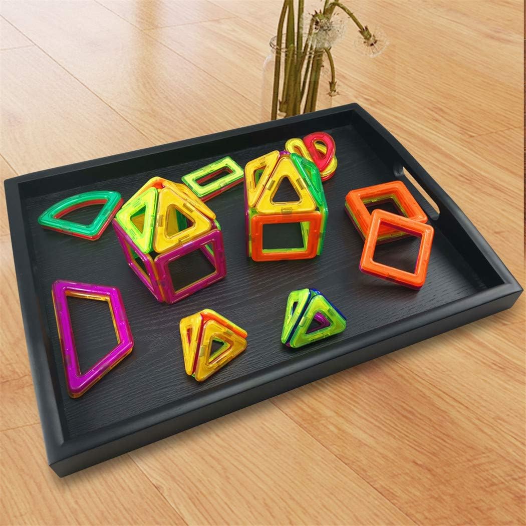 DILLMAN Serving Tray Large Black Wood Rectangle Food Tray Butler Tray Breakfast Tray with Handles (Medium)