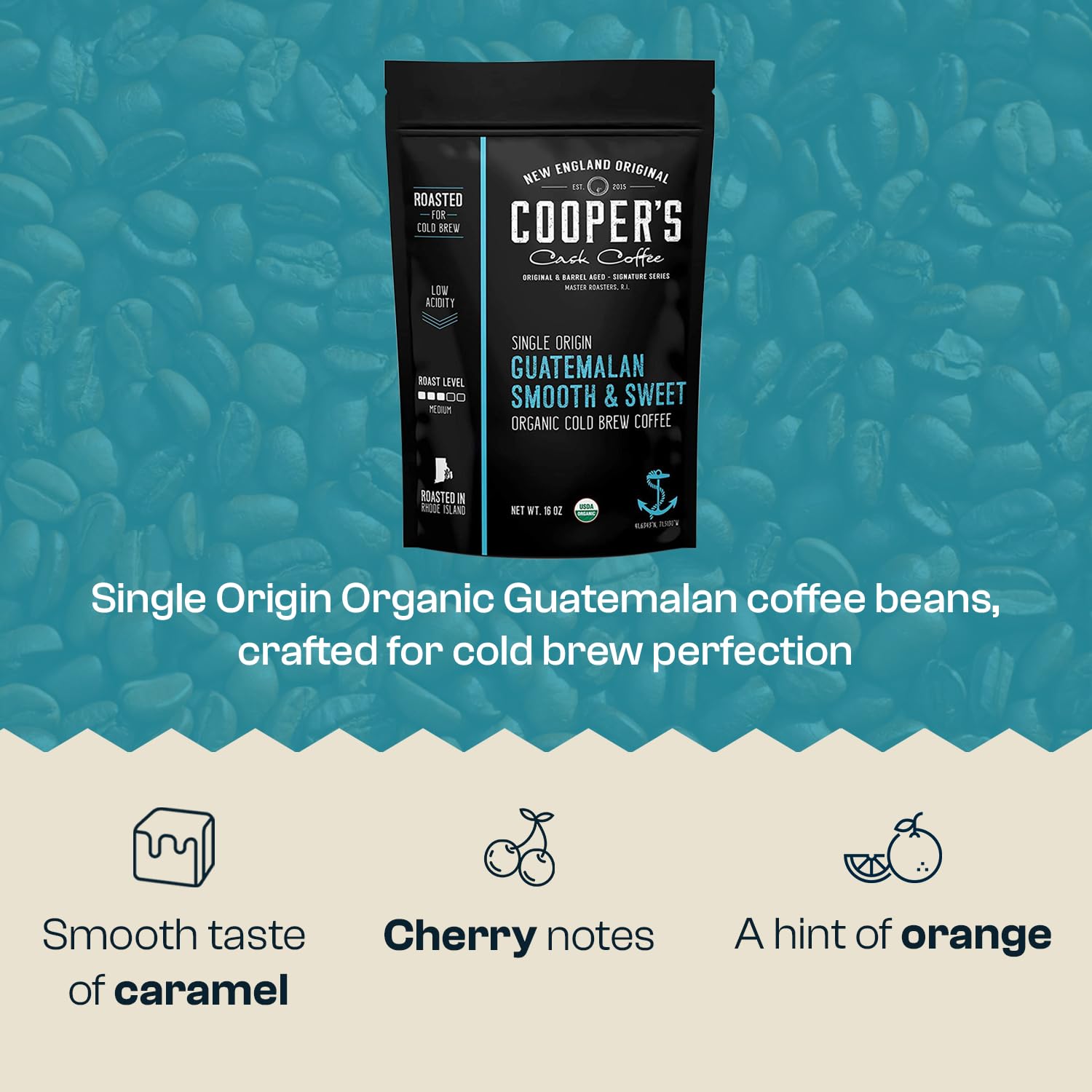 Guatemala Organic Cold Brew Coffee, Single Origin, Gourmet Beans, Tasting Notes of Milk Chocolate, Creamy Caramel & A Hint of Orange, Medium Roast Coarse Ground Beans, 16 oz Coffee Bag