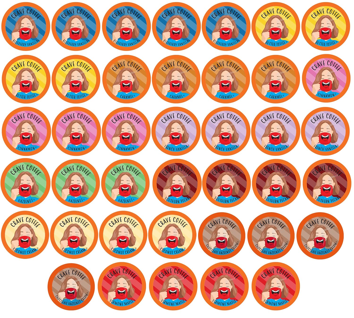- What do you crave? Is is Butter Toffee? Vermont Maple? Blueberry Vanilla? With the Crave coffee variety pack you can have them all and enjoy a new flavor every morning! This is a true variety pack and flavors and pod distribution may vary from what is pictured.
