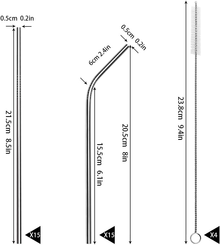 - 🍹 Super Valuable Set - 15 straight straws, 15 bent straws and 4 cleaning brushes.