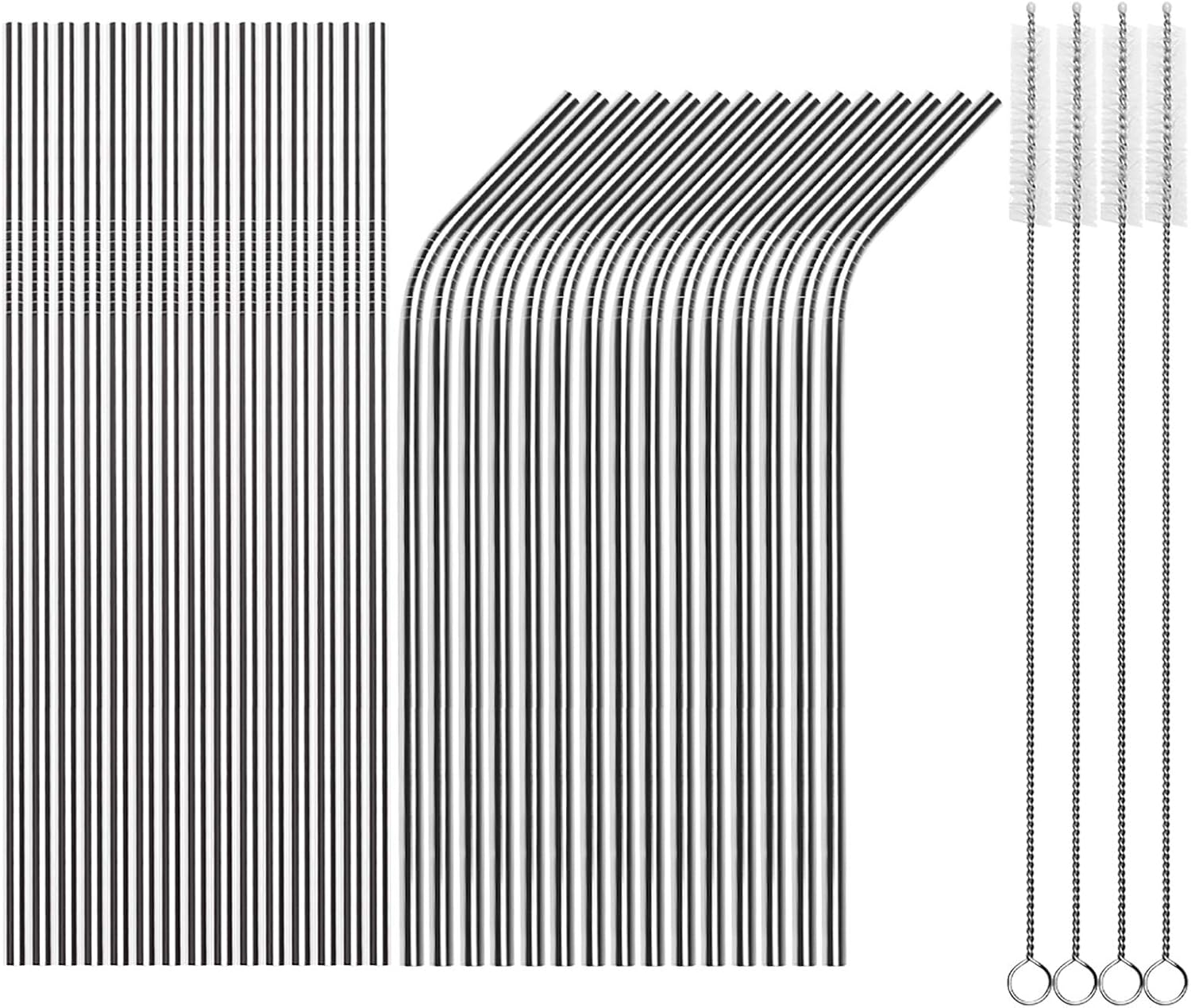 Tomorotec Reusable Straws 30 Pack, Stainless Steel Drinking Straws, Metal Straw Bulks for Smoothies Tumblers Cocktail MilkShake,Set of 15 Straight and 15 Bent with 2 Cleaning Brushes, Silver
