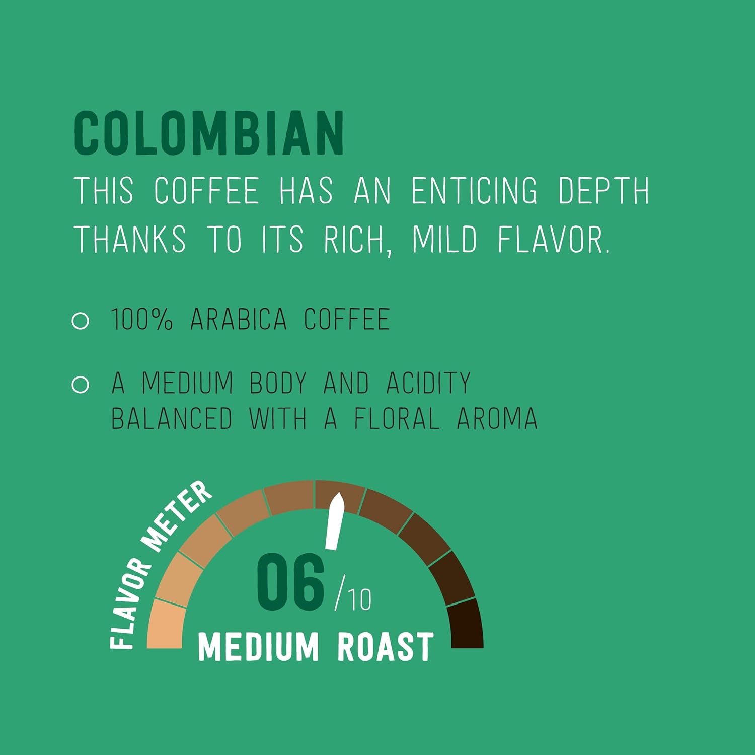 - Harvested in regions of Colombia where the coffee is renowned for its rich, mild flavor