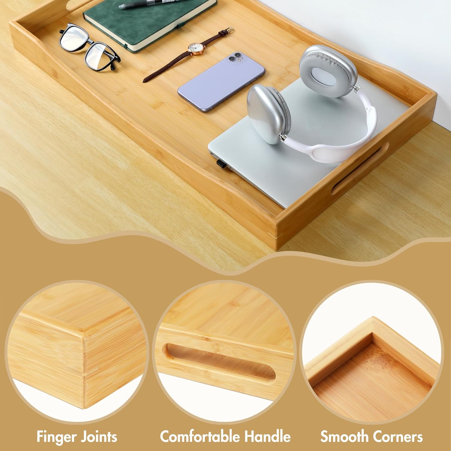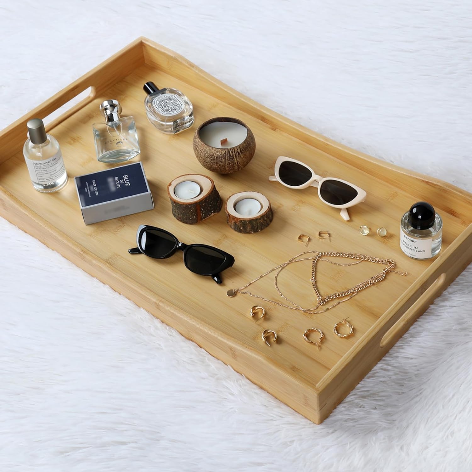 GOBAM Bamboo Extra Large Ottoman Tray, 26 x 15 inches - Wooden Tray for Dining Table & Parties, Serving Tray with Handles for Food, Cheese, Snacks, Tea, Coffee & Wine